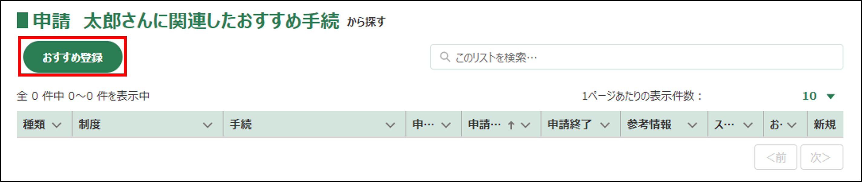 おすすめ手続を設定し、おすすめ手続から申請する手順を記載します。