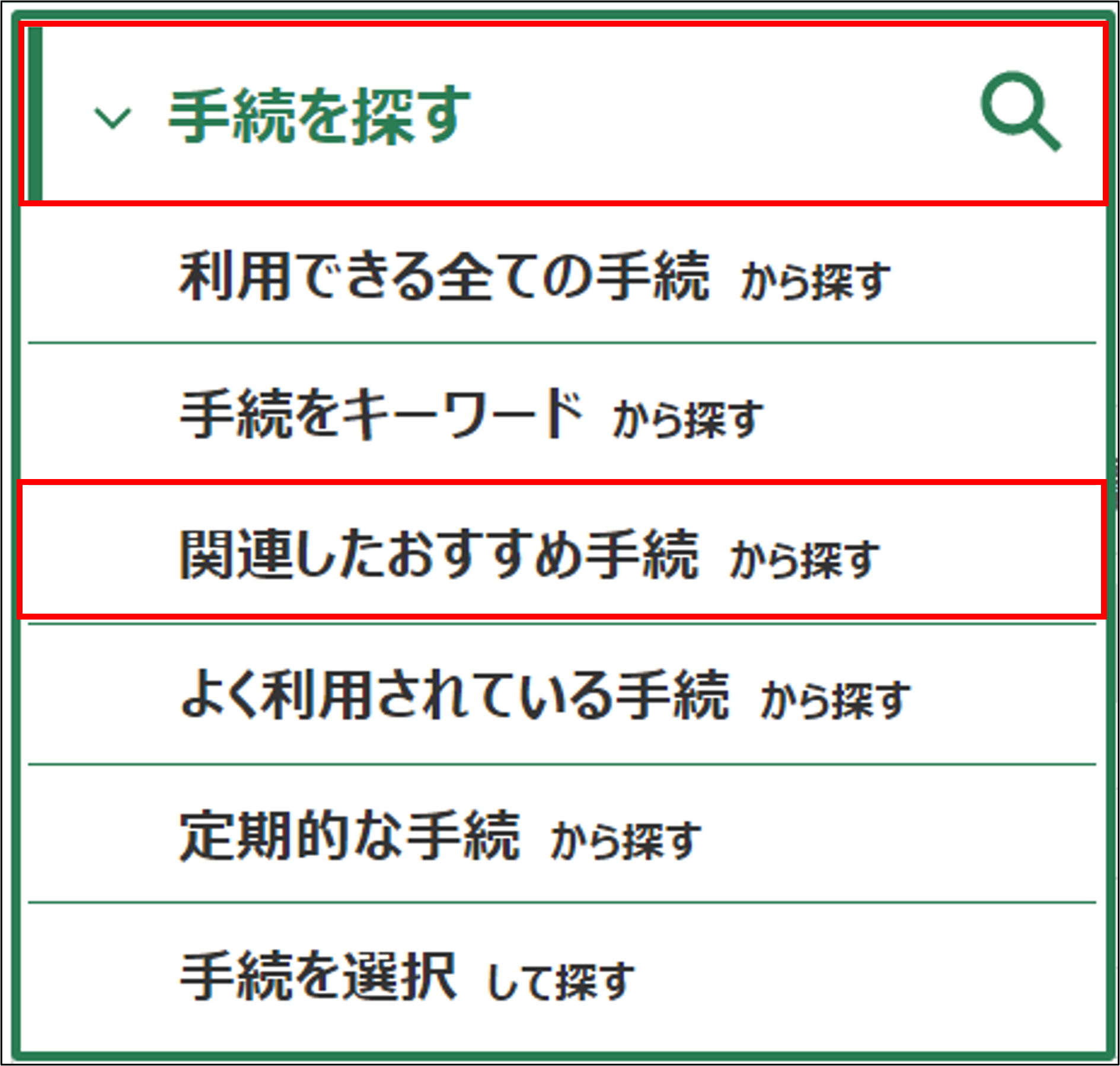 2.「関連したおすすめ手続から探す」画面が表示されます。