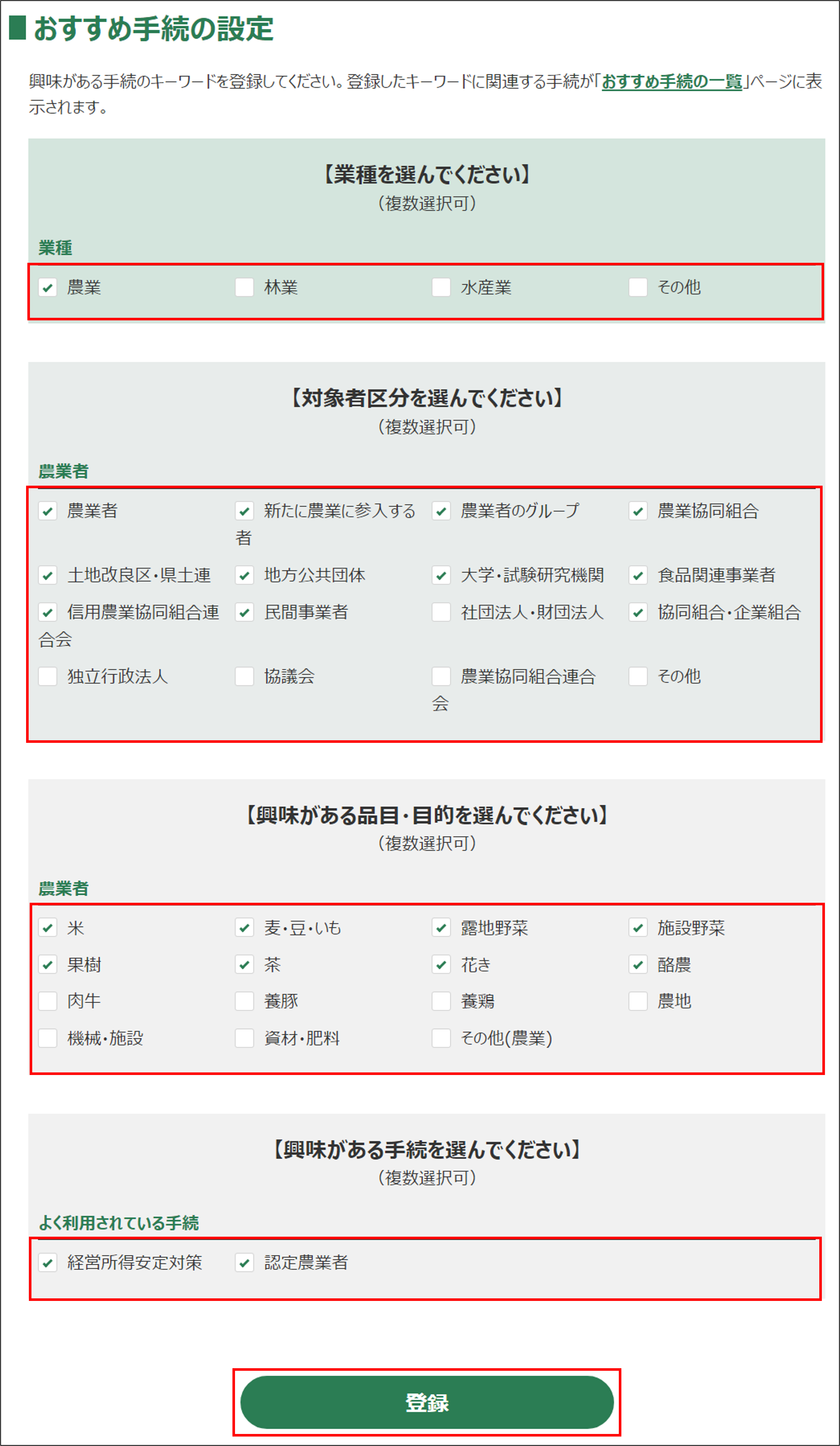 興味のあるキーワードにチェックを入れ、「登録」ボタンをクリックします。