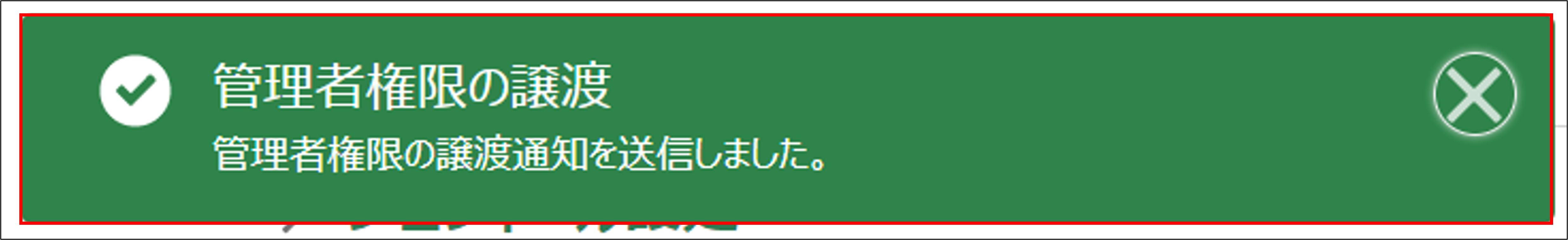 画面上部に「管理者権限の譲渡通知を送信しました。」と表示されます。