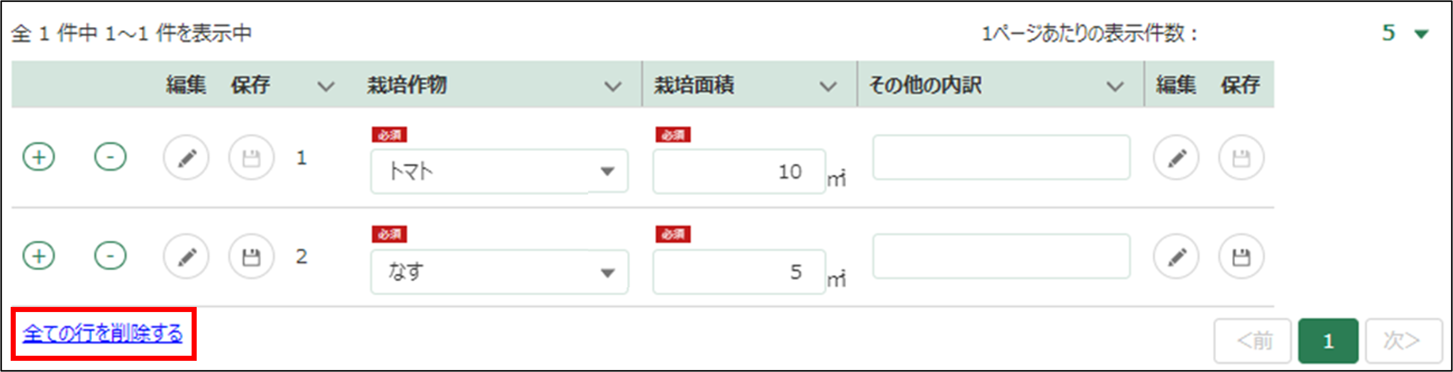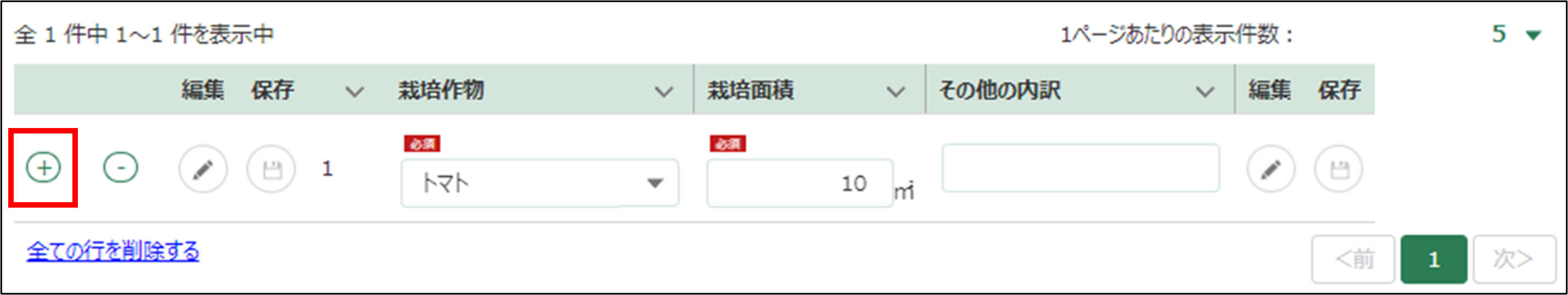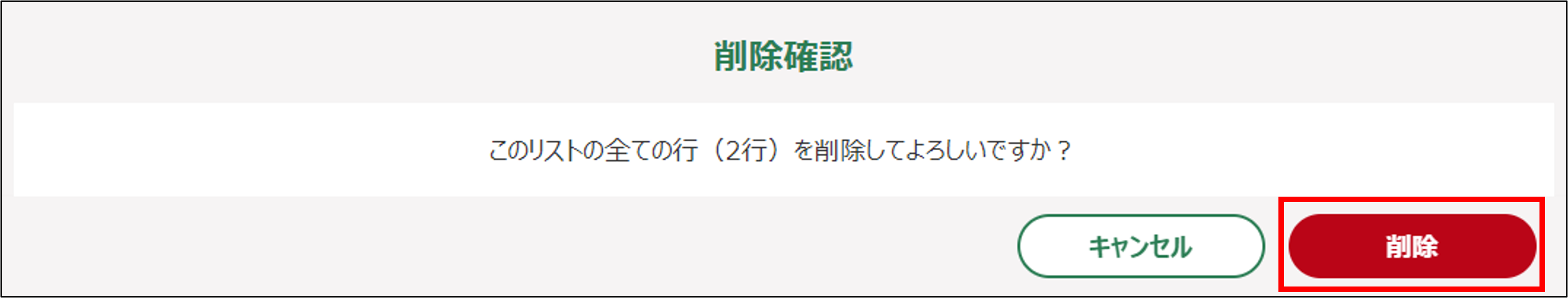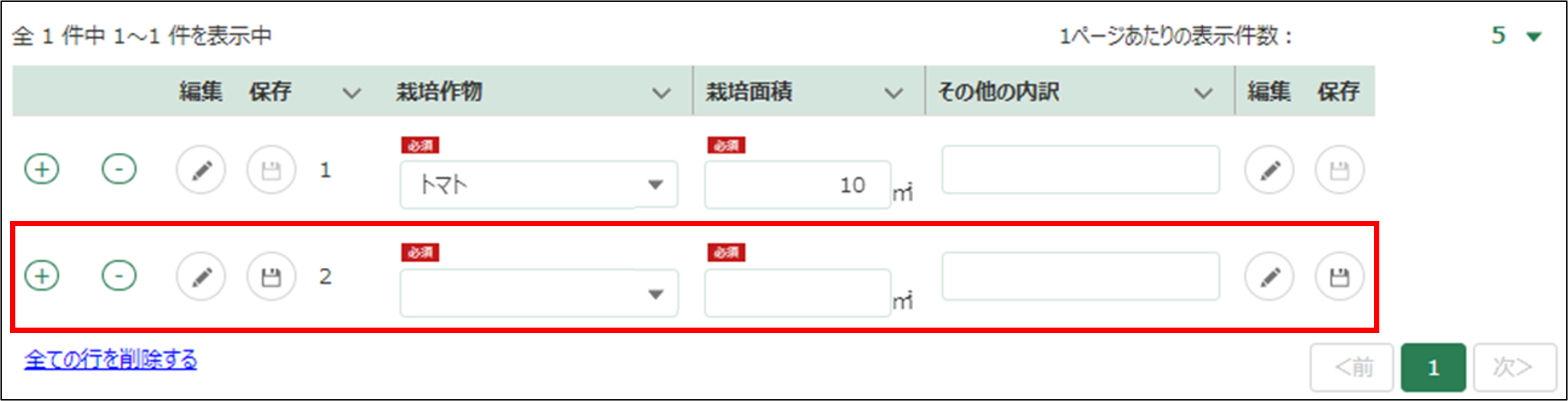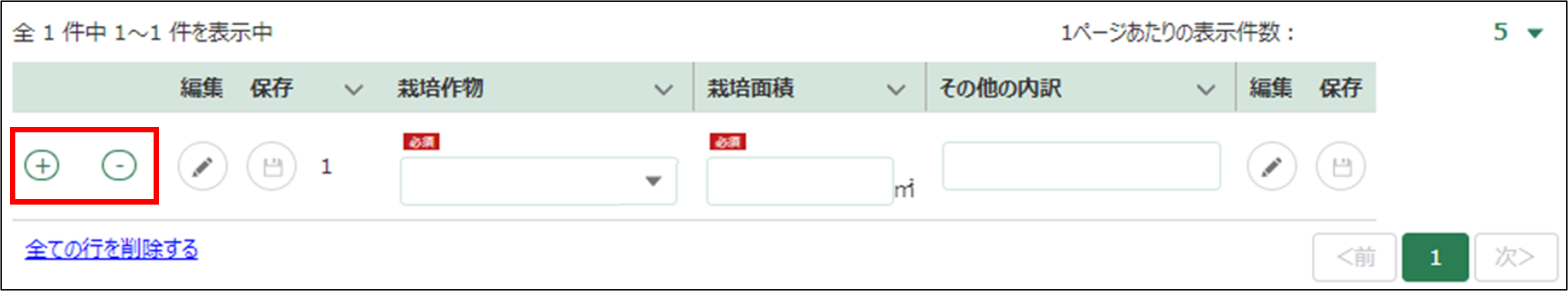 1.追加した行を削除する場合は、画面左の「」ボタンをクリックします。