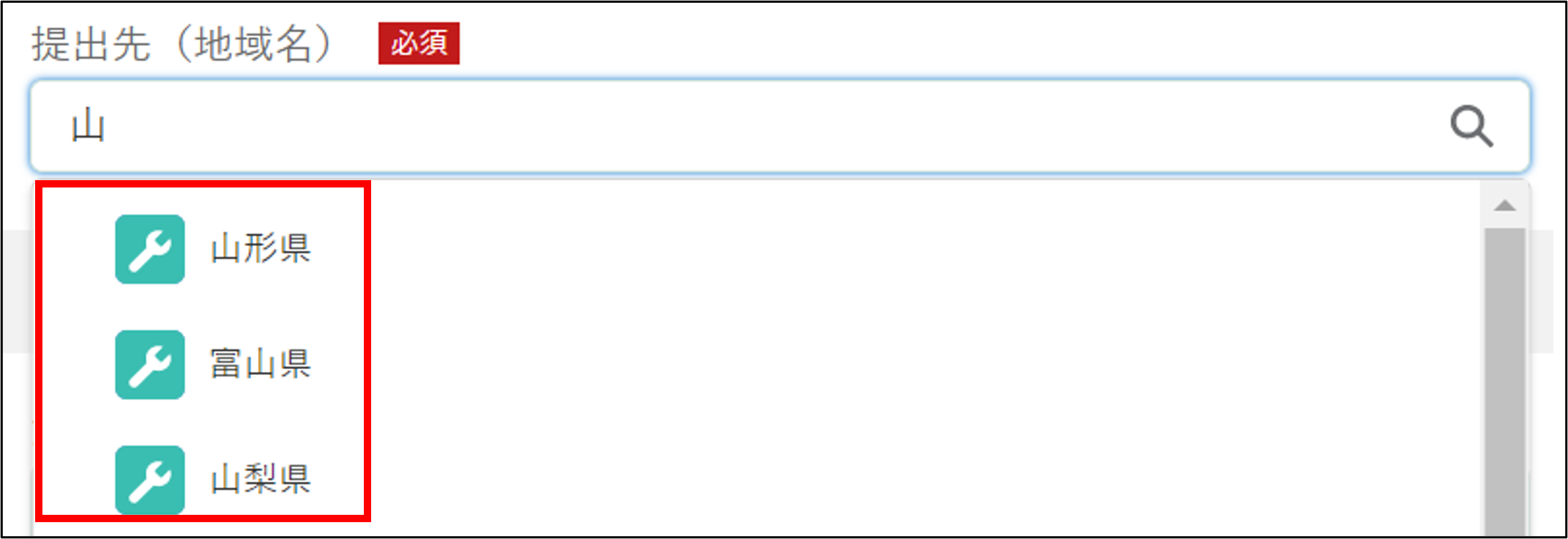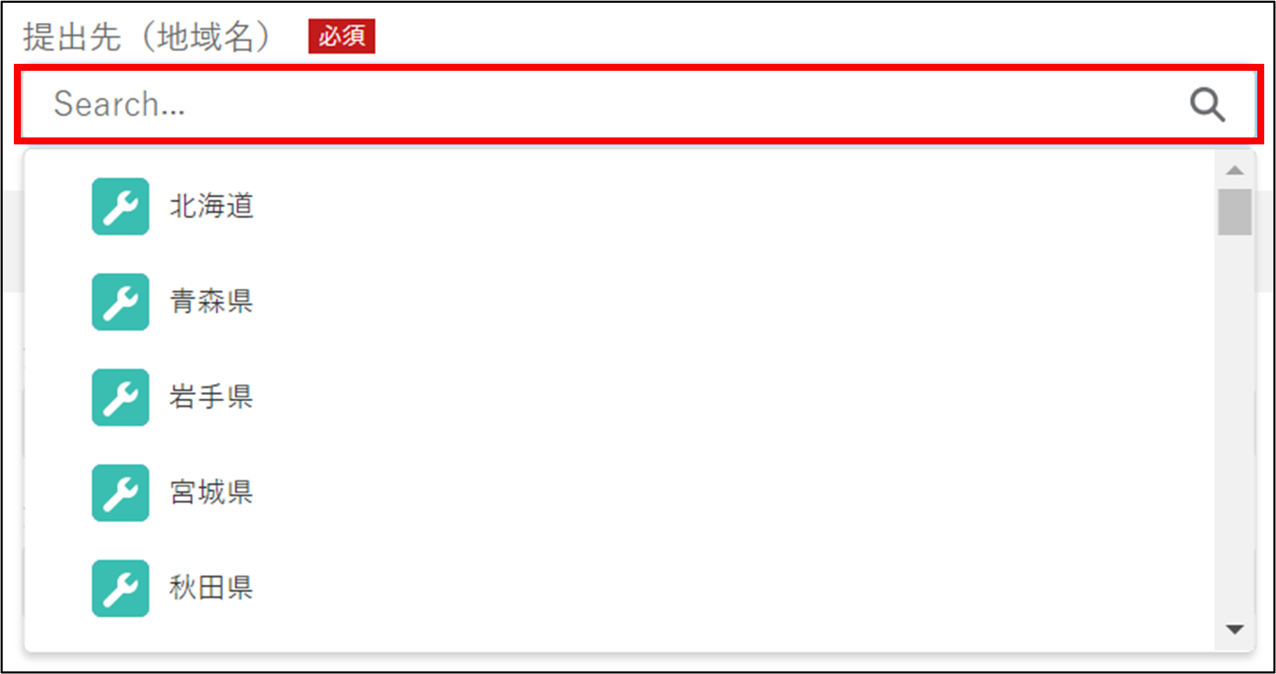 一覧から該当する項目を選択できるほか、選択したい項目の一部を入力し、項目を絞り込むことができます。