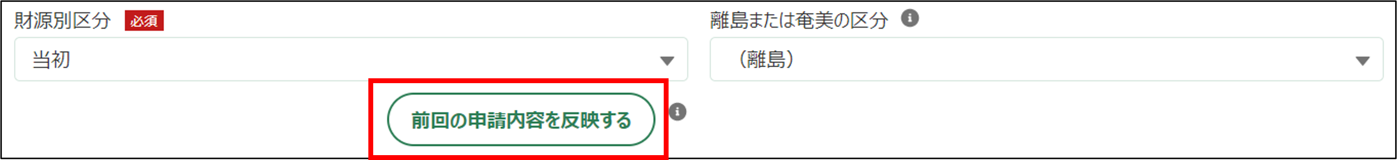 4.すでに共通申請サービスで申請した繰越申請等の審査が完了している場合は、「前回の申請内容を反映する」ボタンをクリックします。