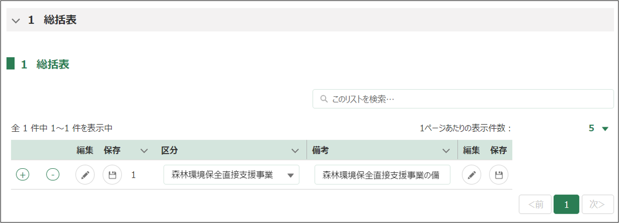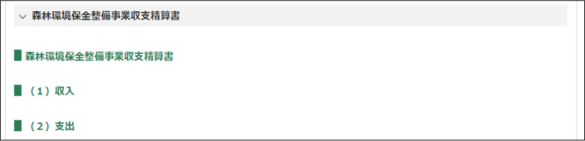 森林環境保全整備事業では各様式の備考が入力されている場合と未入力の様式がある場合に表示されます。