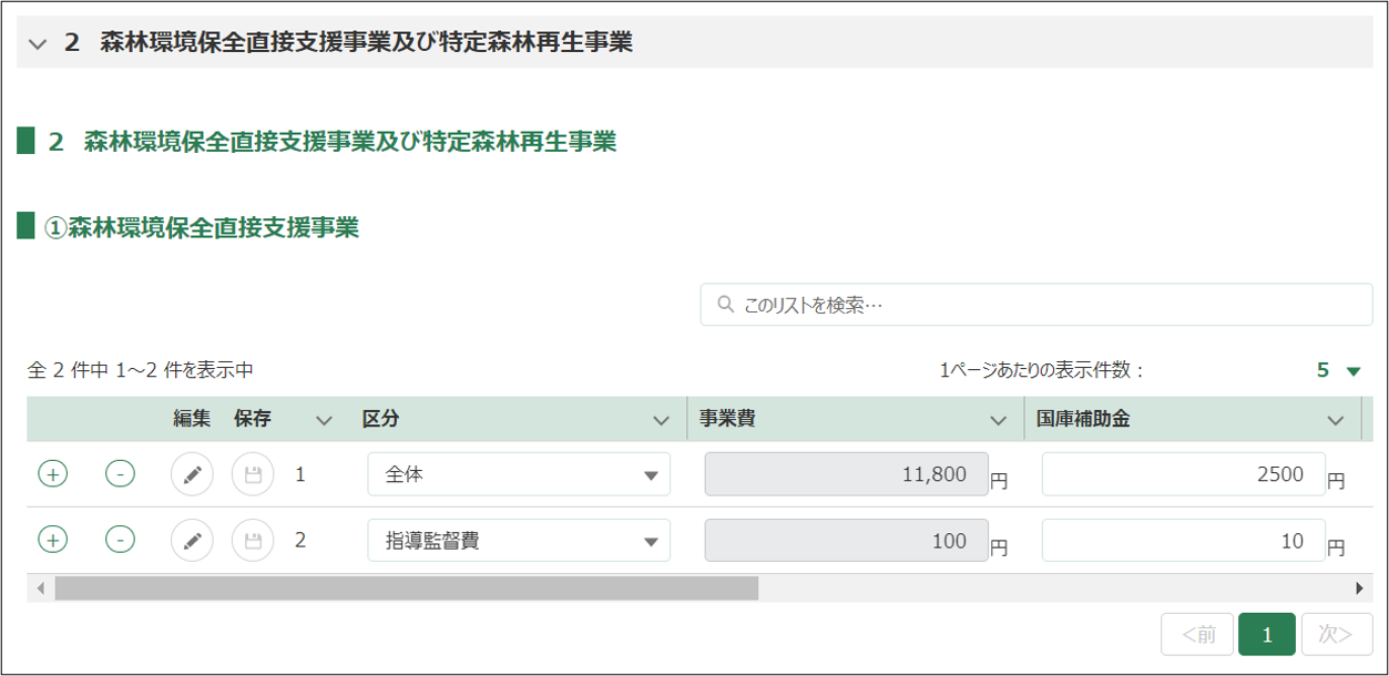 8.2 森林環境保全直接支援事業及び特定森林再生事業を入力します。