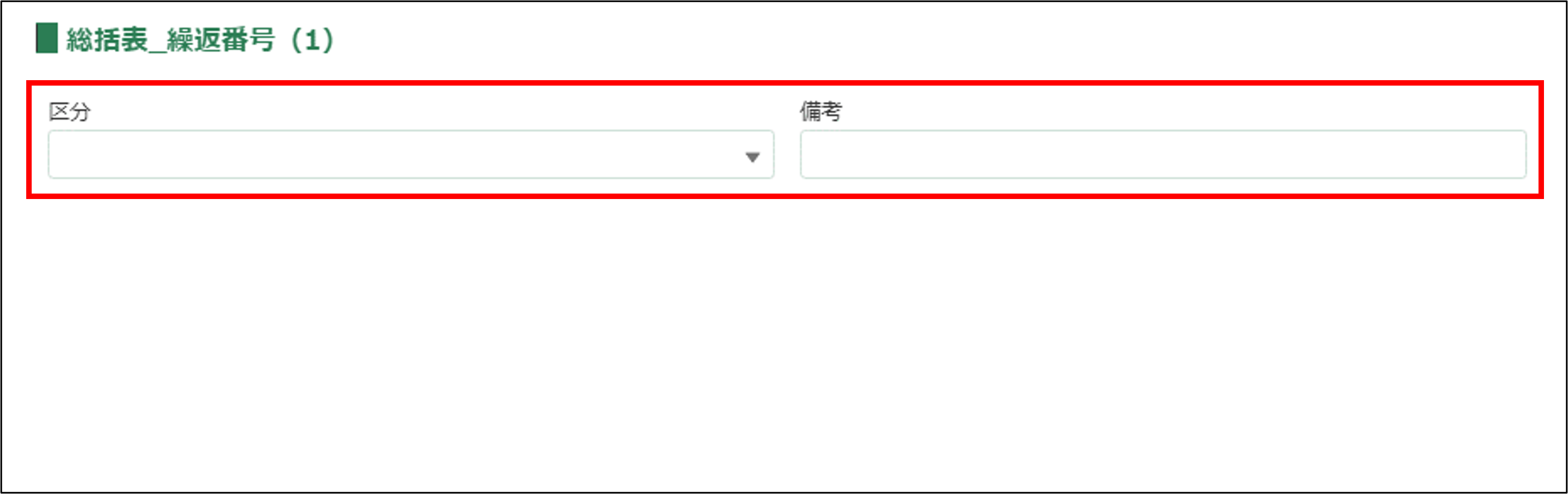 各入力項目の枠内をクリックし、区分と備考を入力します。