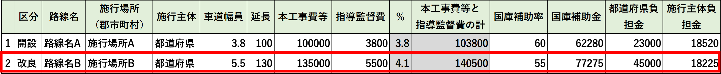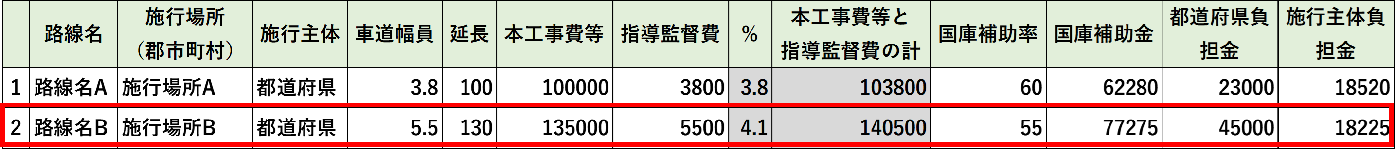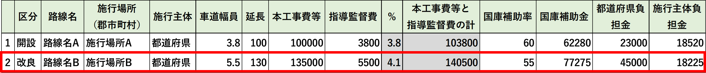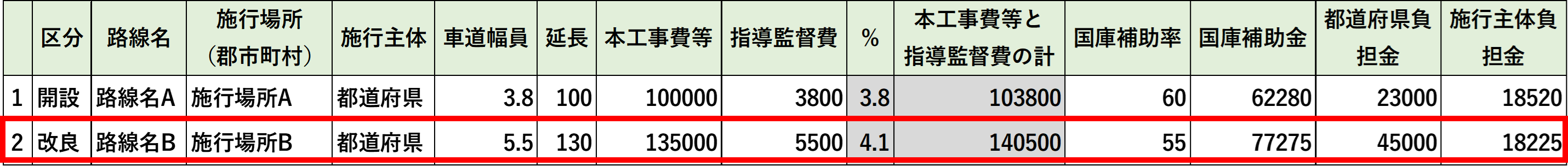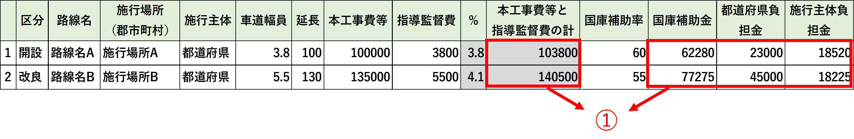 | 本工事費(国庫補助金) | 「本工事費等」と「国庫補助率」を乗算した値が表示されます。 |