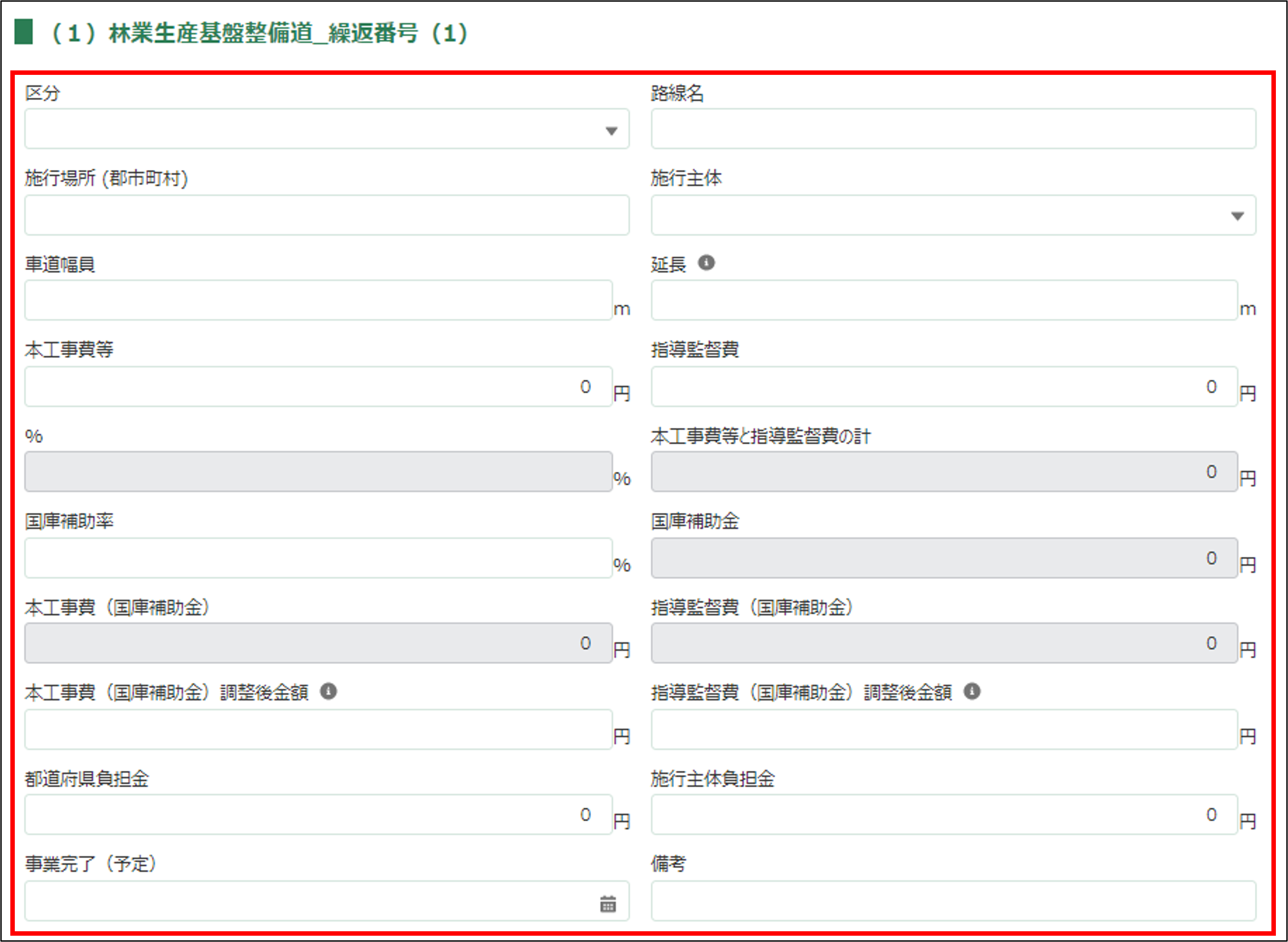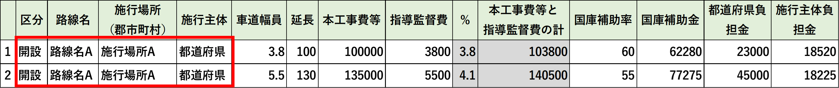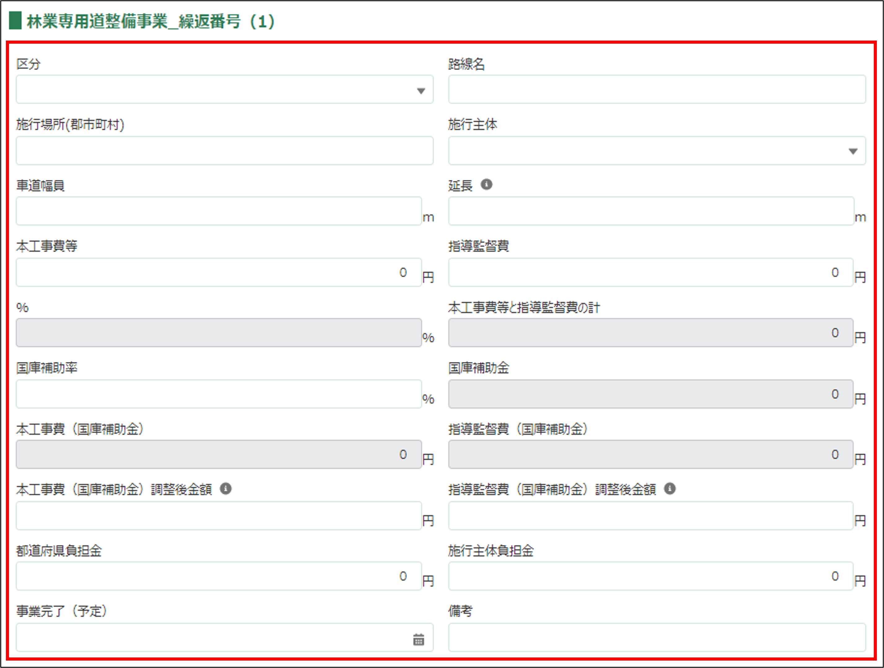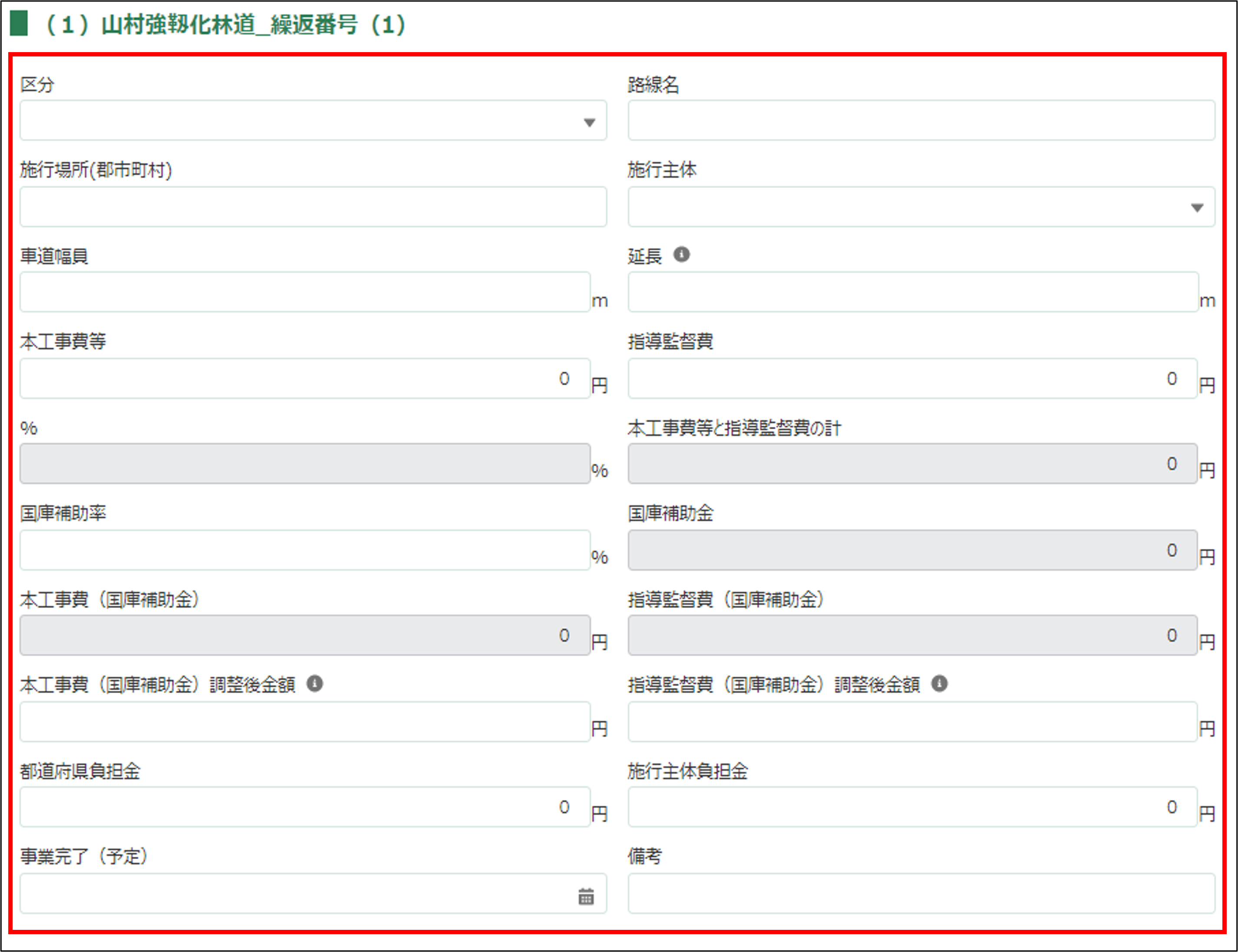 | 本工事費(国庫補助金) | 「本工事費等」と「国庫補助率」を乗算した値が表示されます。 |