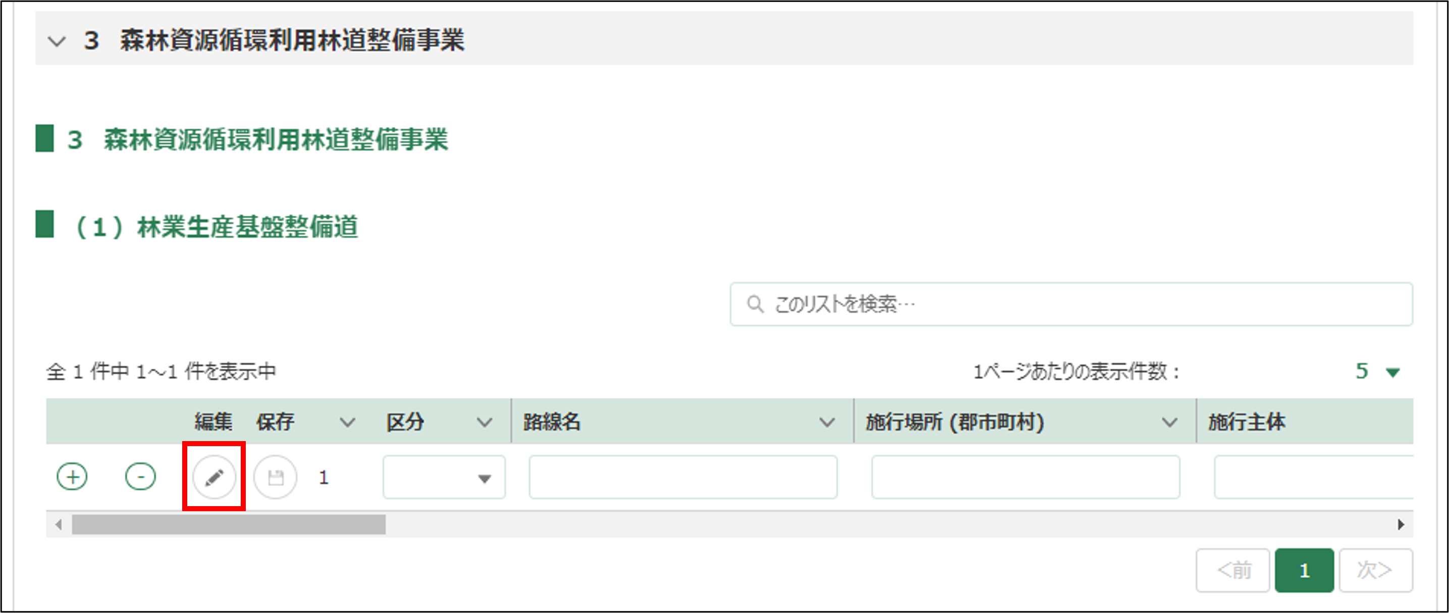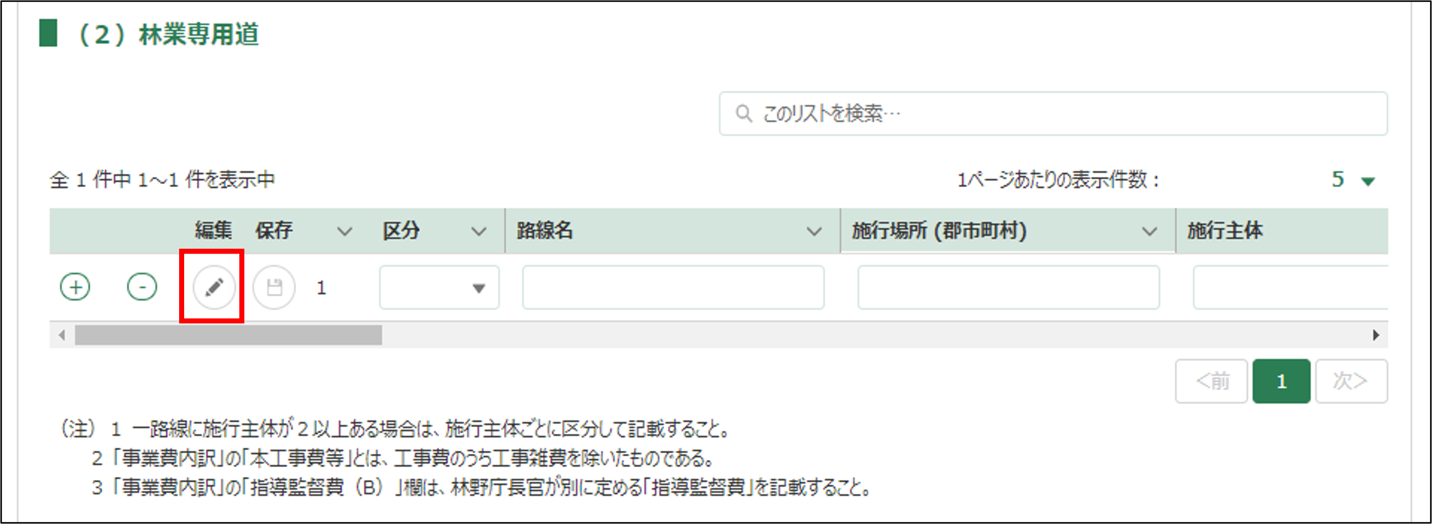 9.2の付1 森林災害等復旧林道開設を入力します。