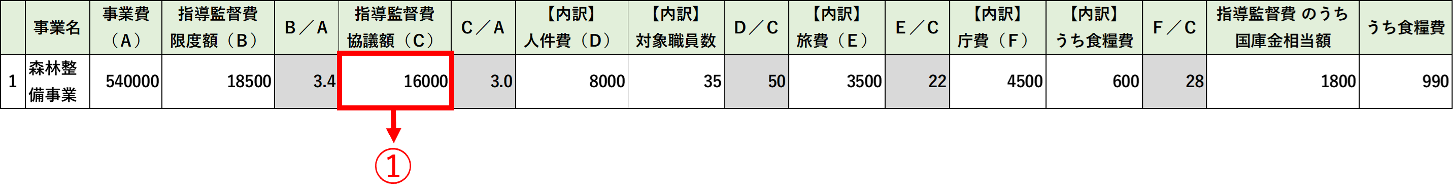 | ② | 別紙2の指導監督費協議額合計 12380(別紙3と一致) |