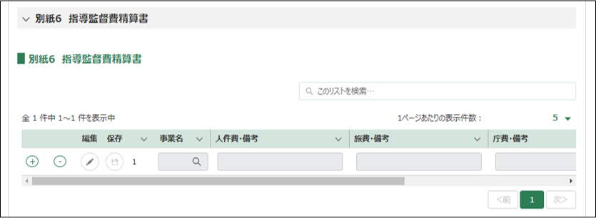 「前回の申請内容を反映する」ボタンクリック後の反映した明細から「指導監督費」の行を削除して申請する