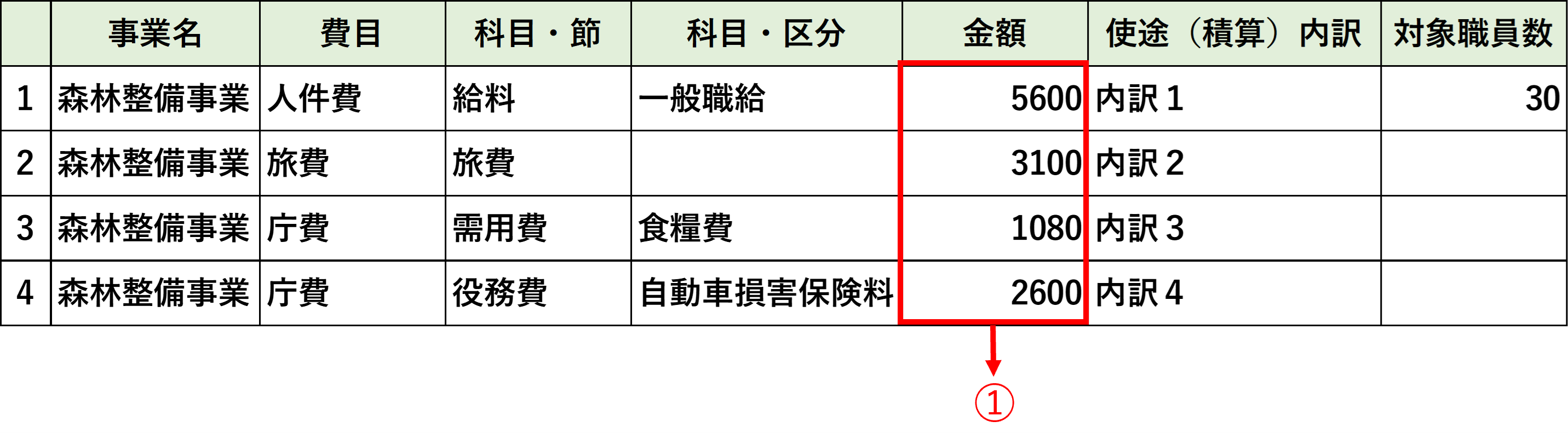 費目が「人件費」の場合のみ、対象職員数を半角数字で入力してください。 |