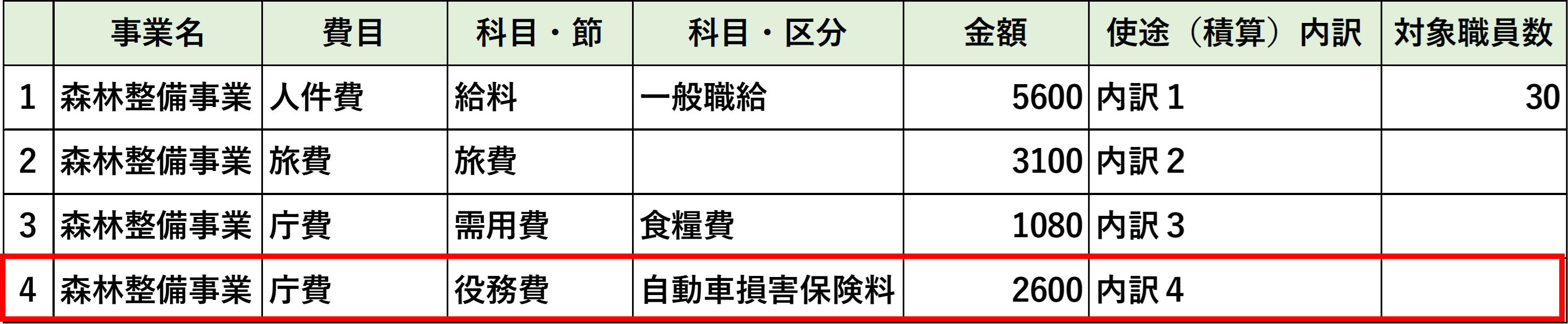 ・区分、事業名、項、目、目細のすべてが同じ行を追加する場合
