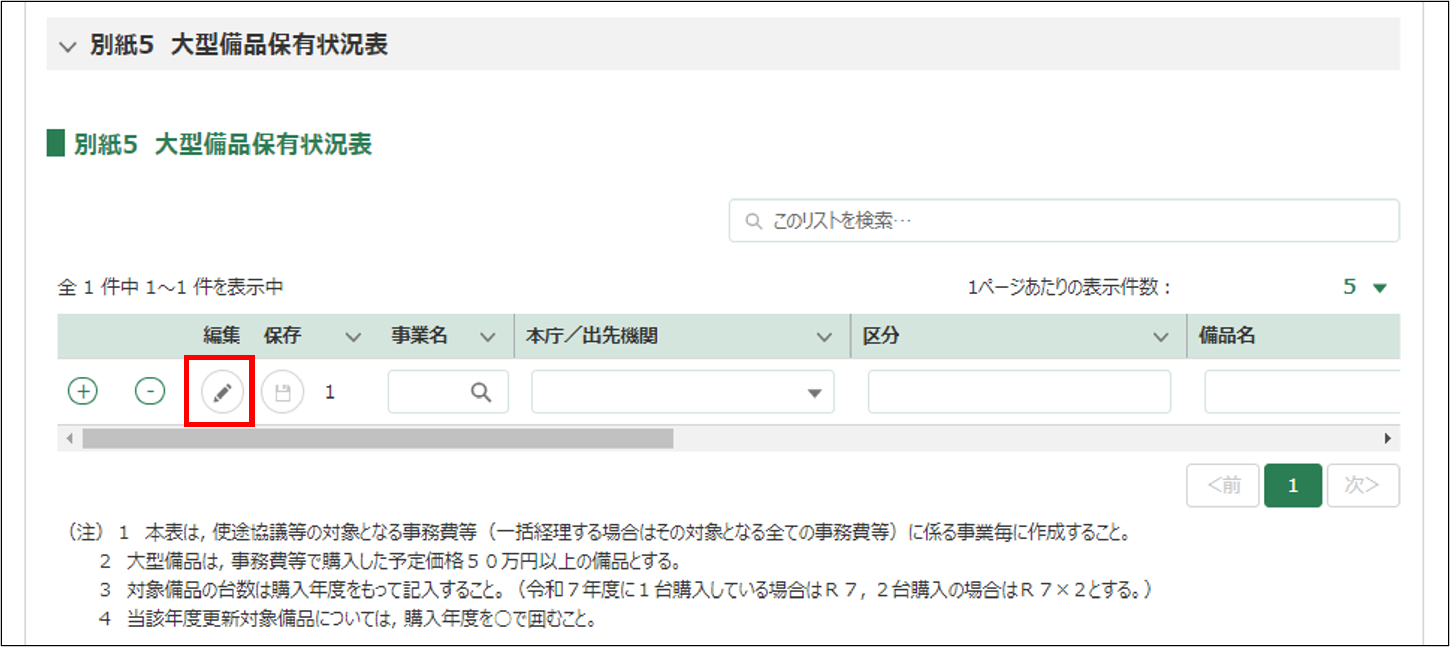 更新対象の備品名を入力してください(最大文字数:60文字)。 ※「本庁/出先機関」が「本庁計」「出先計」「合計」の場合は、入力不要です。 |