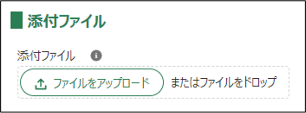 22.添付ファイルがある場合は、「ファイルをアップロード」ボタンをクリックし、「開く」ウインドウからファイルを選択するか、「またはファイルをドロップ」欄にファイルをドロップします。