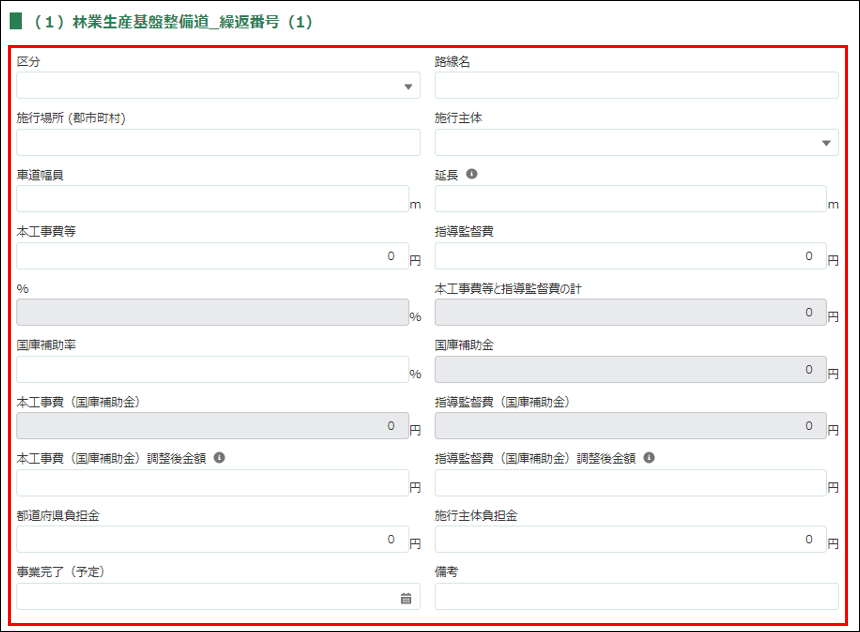 9.2の付1 森林災害等復旧林道開設を入力します。
