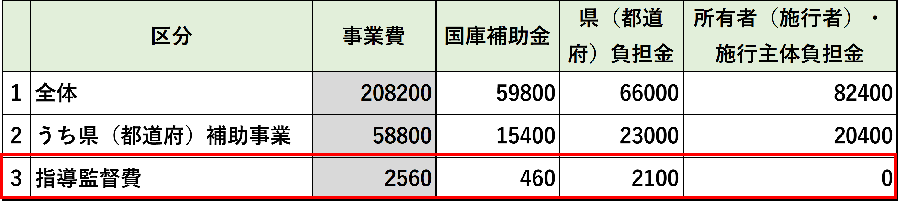 「本工事費等」と「指導監督費」の合計が表示されます。 |