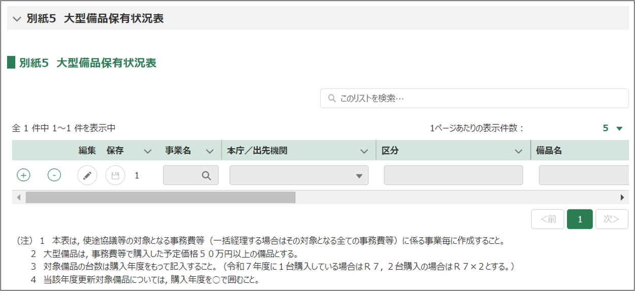 ・区分が「指導監督費」の事業費を区分が「うち県補助事業」の事業費で除算した値が0.045以下になるようにしてください。 [うち県補助事業の事業費]÷[指導監督費の事業費]<= 0.045 ・「前回の申請内容を反映する」ボタンで反映した明細行を削除したり区分を変更したりしないでください(区分以外は編集可能です)。 |