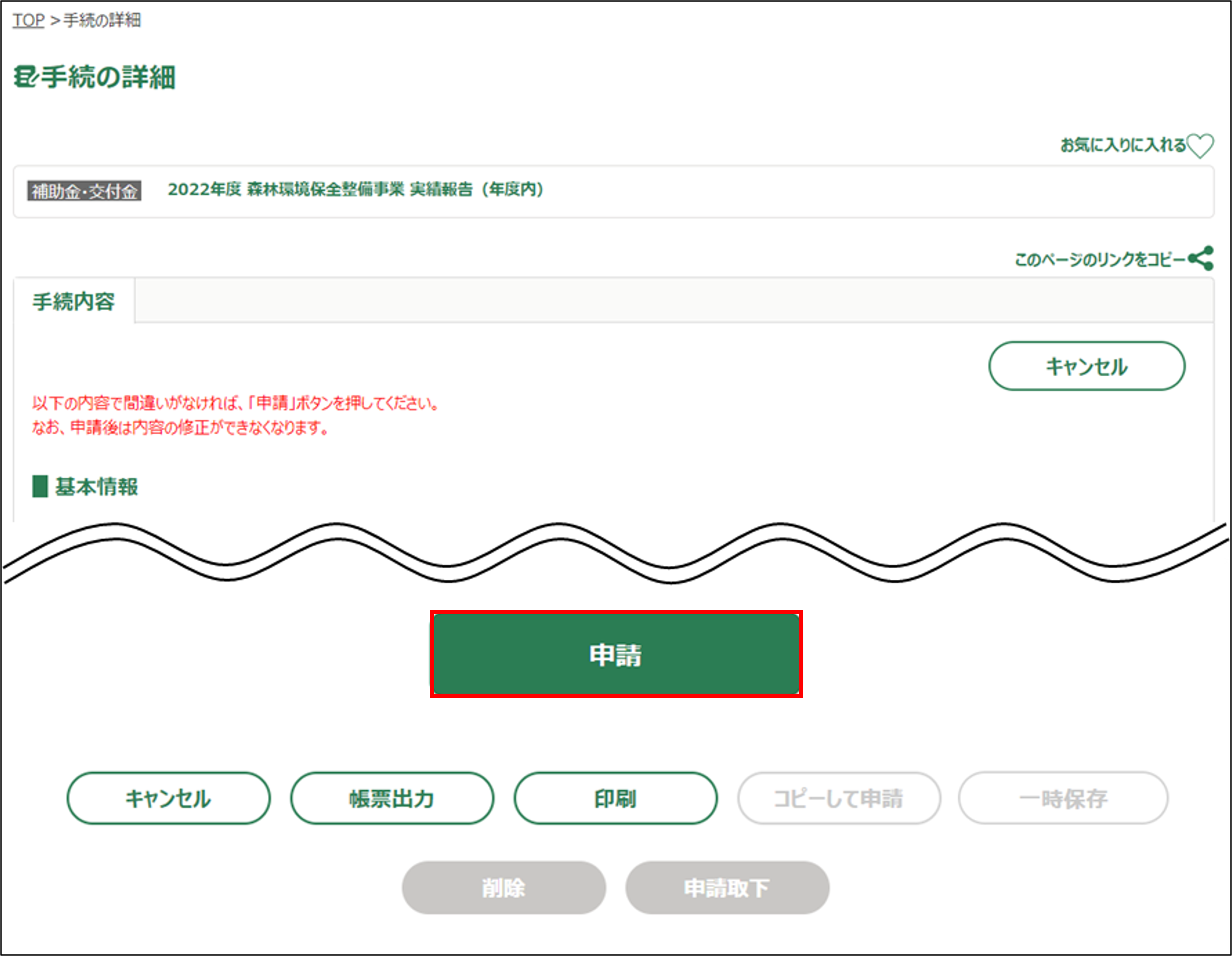 ※「別名義で申請」ボタンは、「森林環境保全整備事業」の申請では使用不可です。