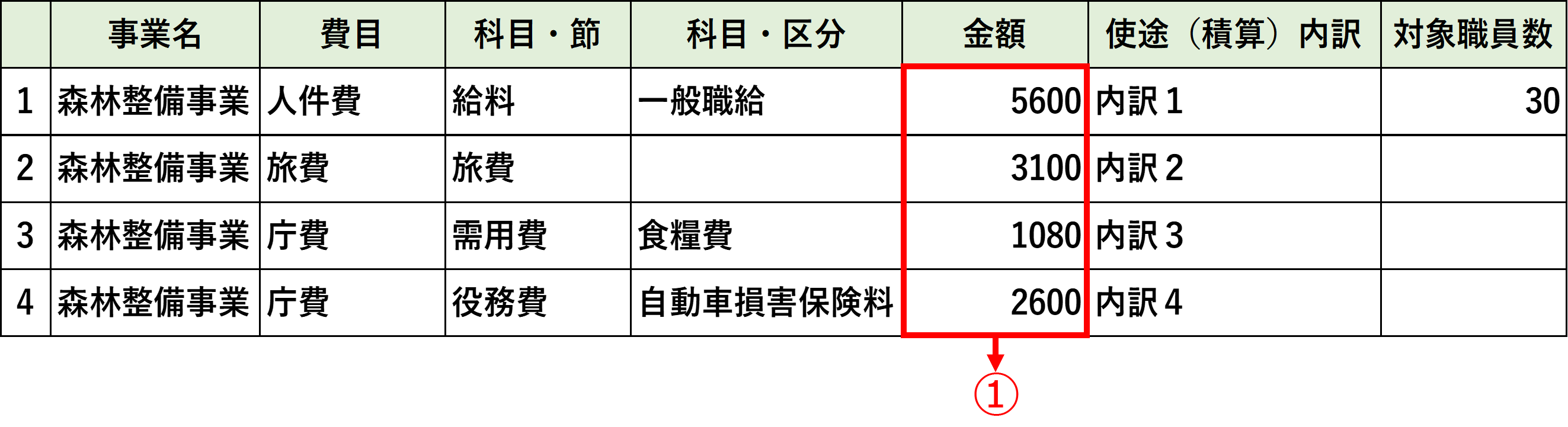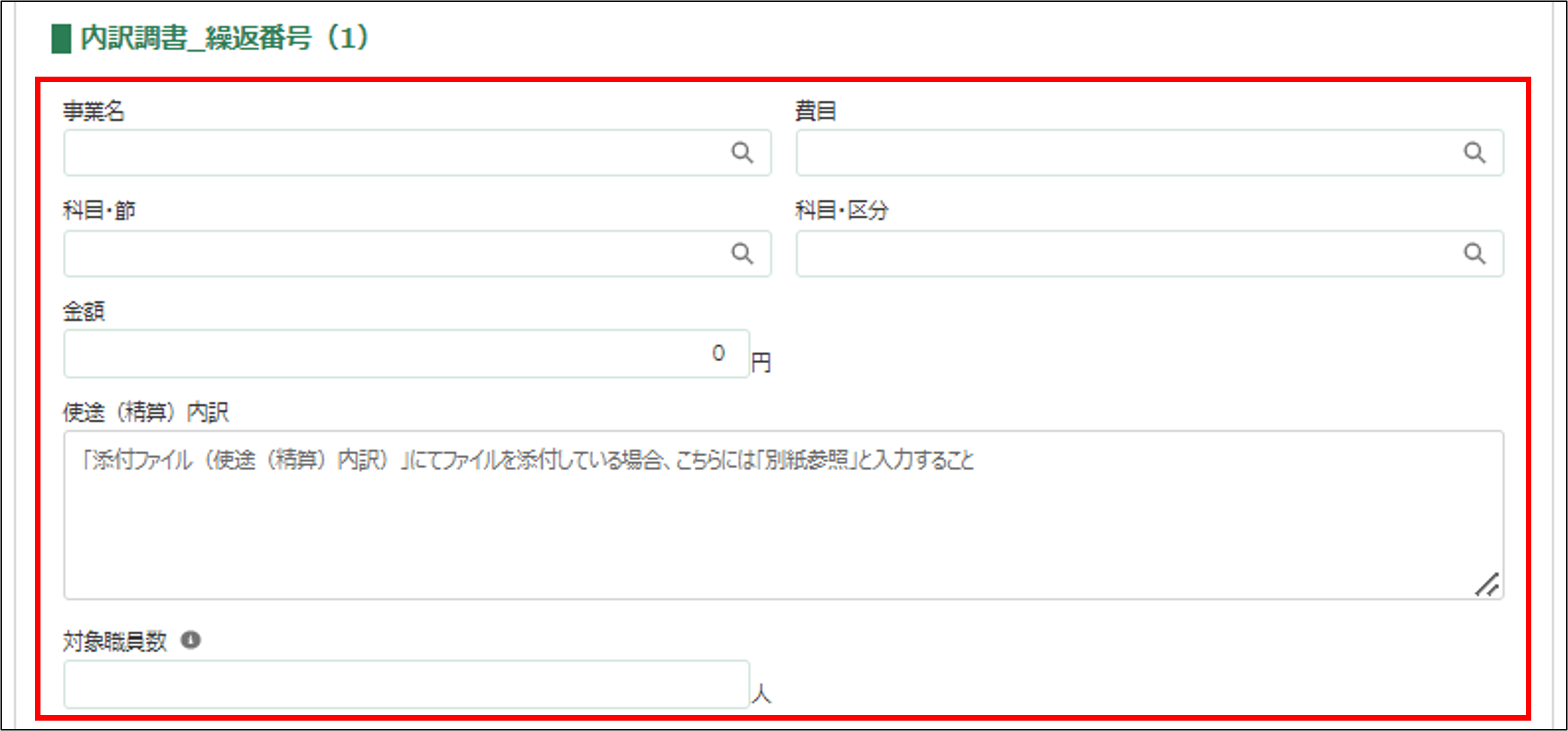費目が「人件費」の場合のみ、対象職員数を半角数字で入力してください。 |