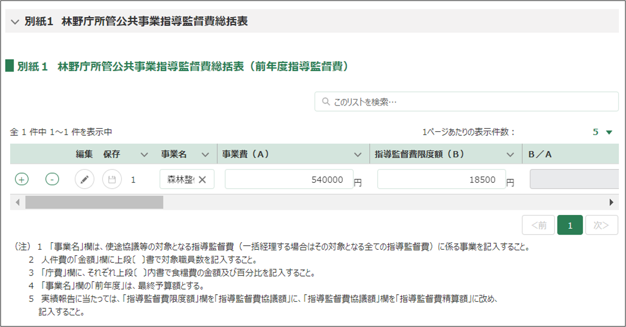 6.「別紙1 林野庁所管公共事業指導監督費総括表(前年度指導監督費)」に前年度の別紙1指導監督費の情報が反映されます。