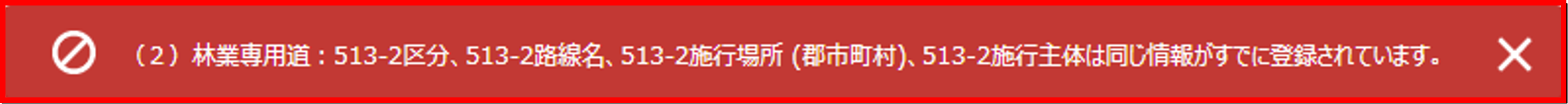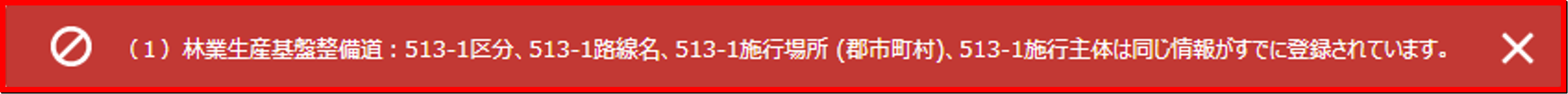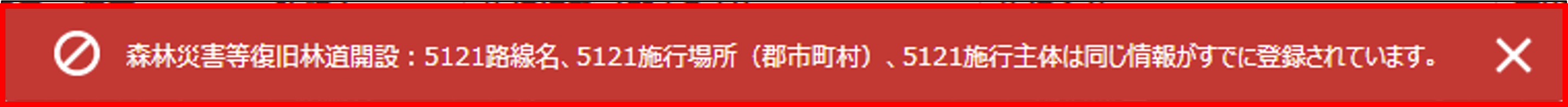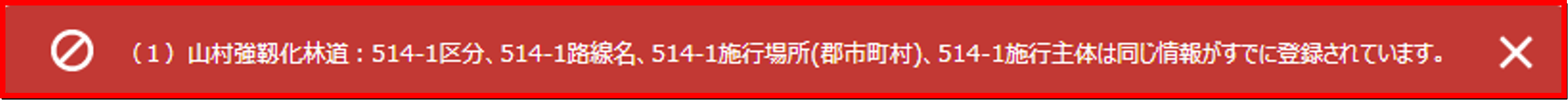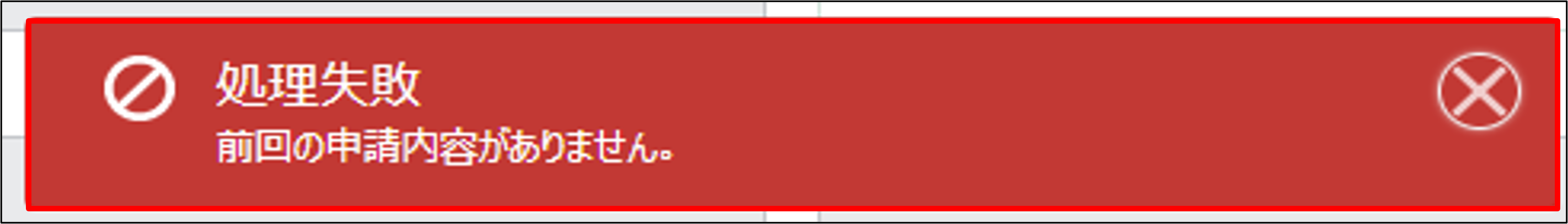 エラーが見つかった場合は、画面上部に、赤い背景のエラーメッセージが表示され、申請が中断されます。