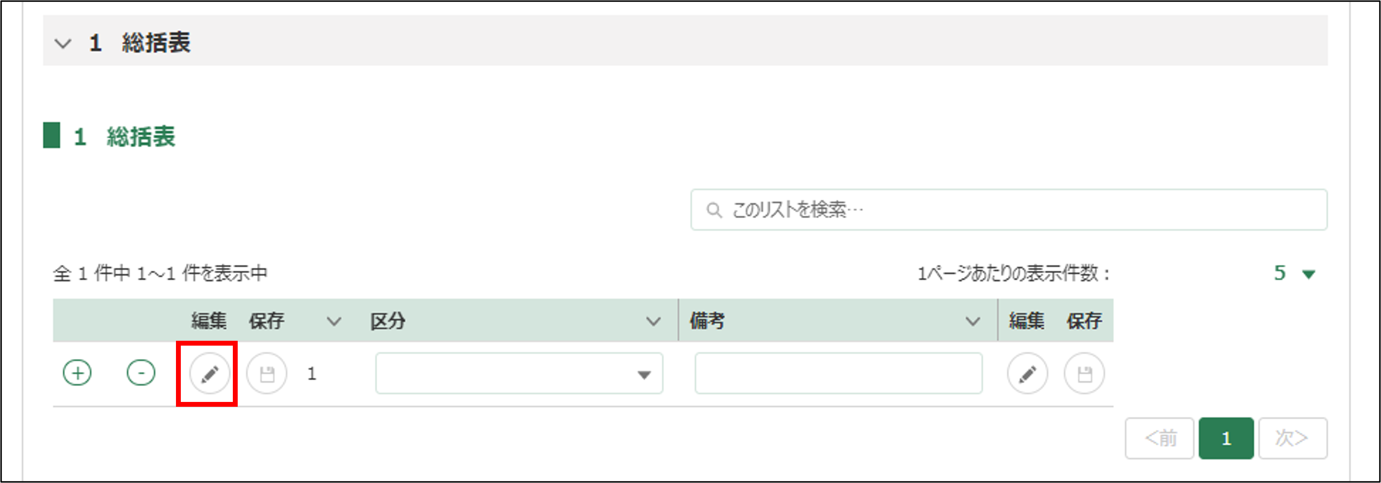 【画面表示②(編集ボタン押下後)】
