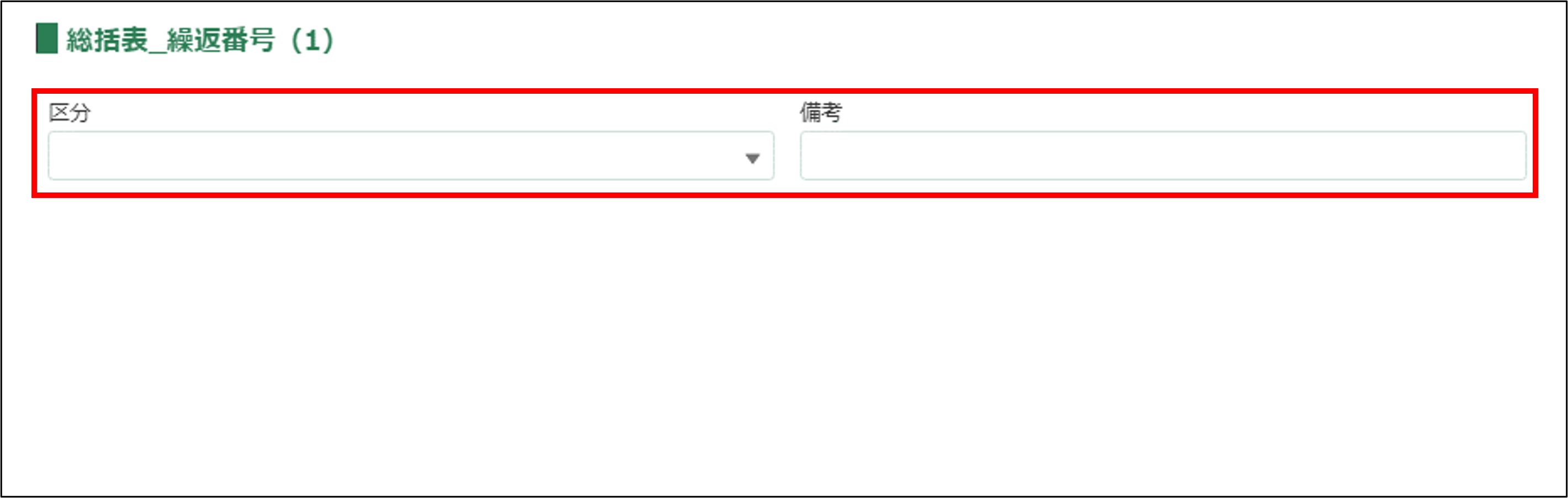 各入力項目の枠内をクリックし、区分と備考を入力します。