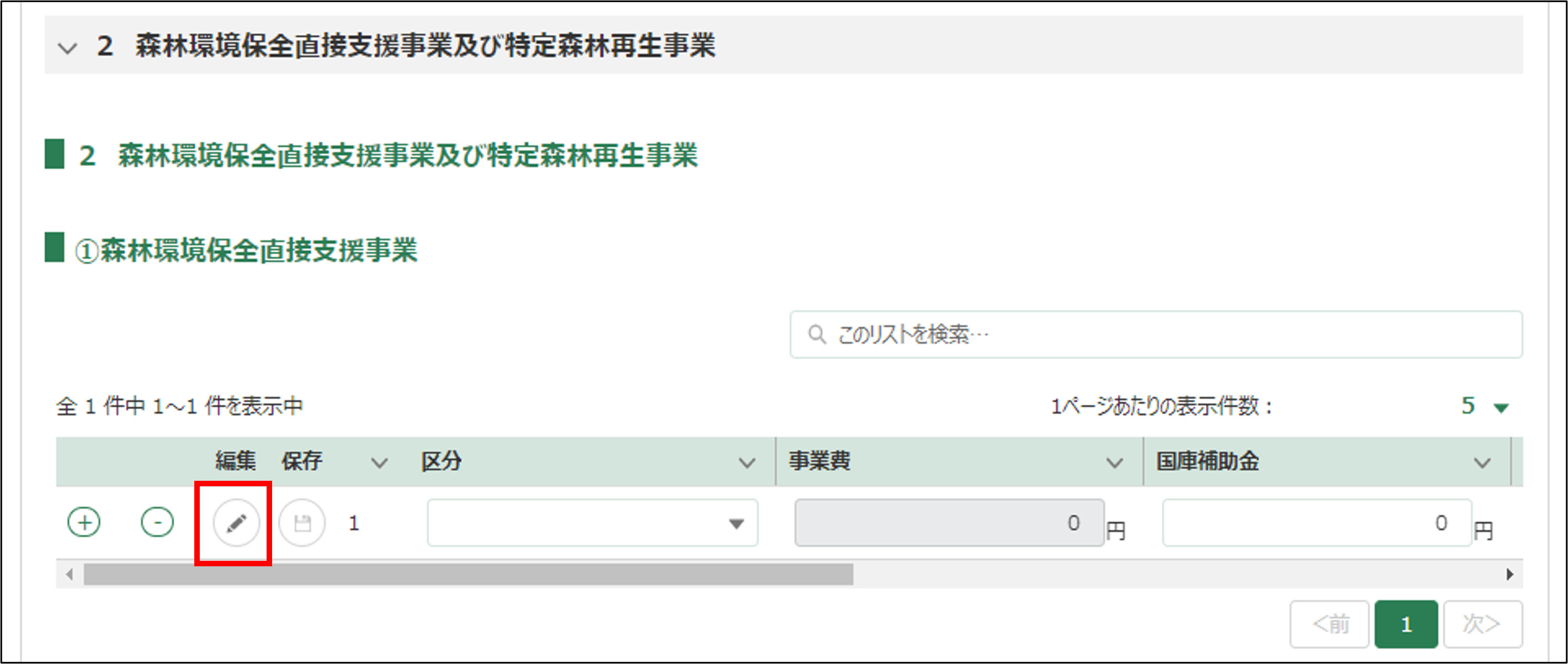 ①森林環境保全直接支援事業を入力します。