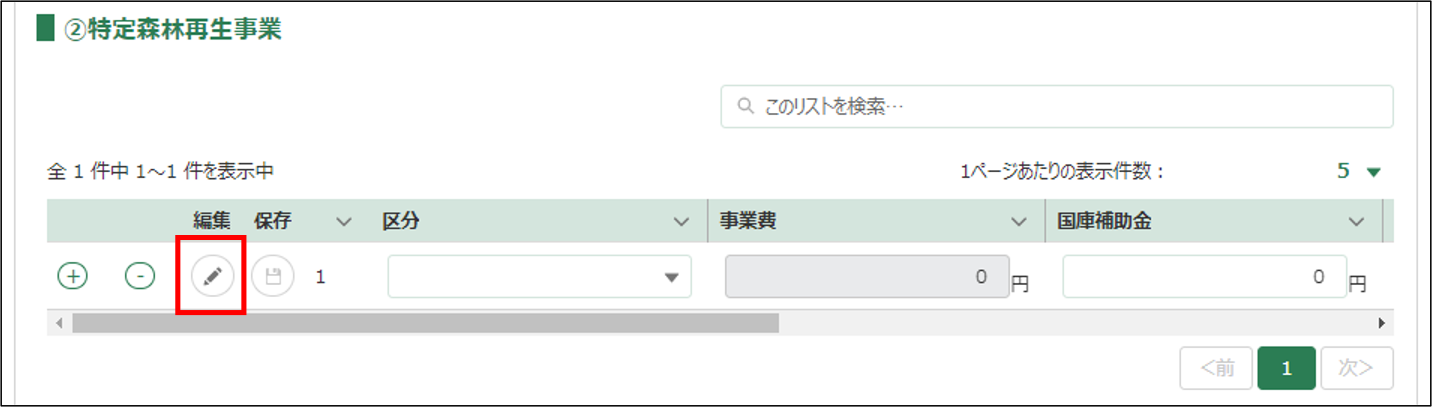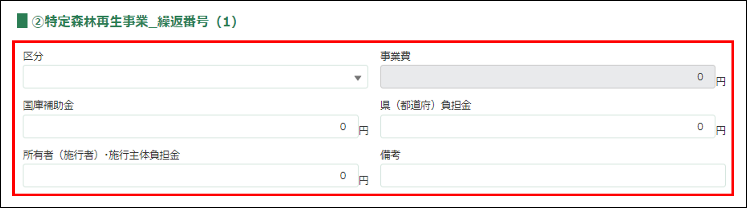➁特定森林再生事業を入力します。