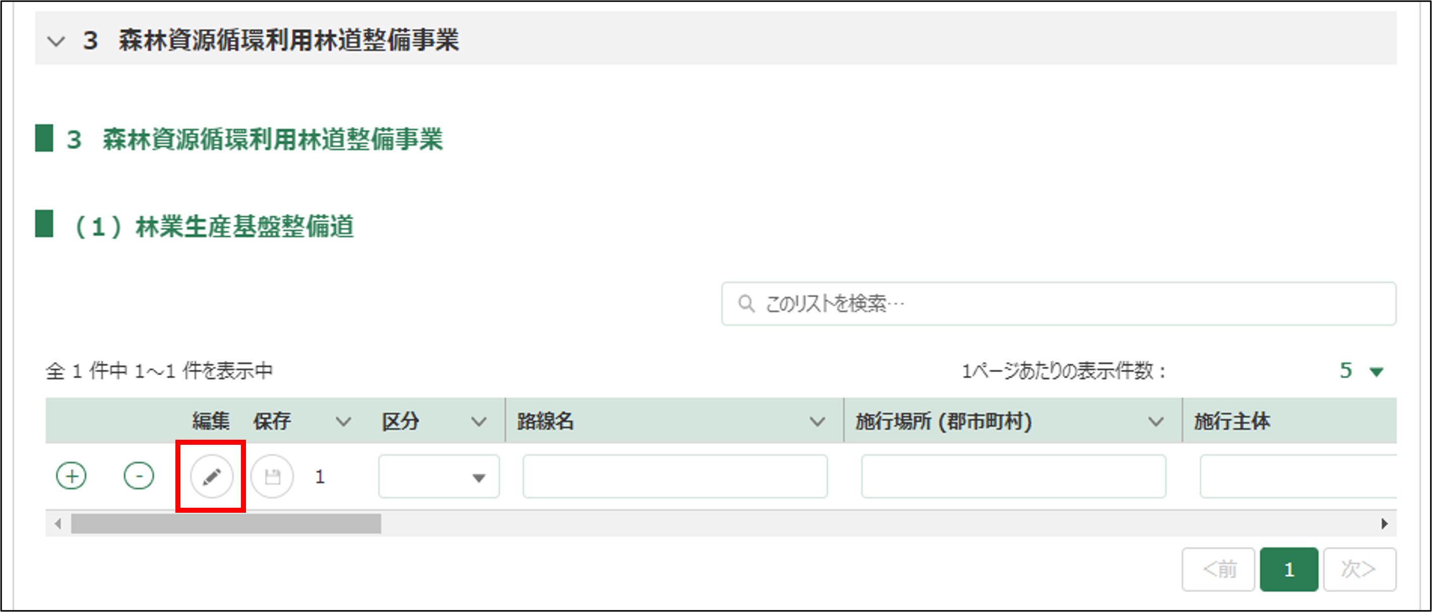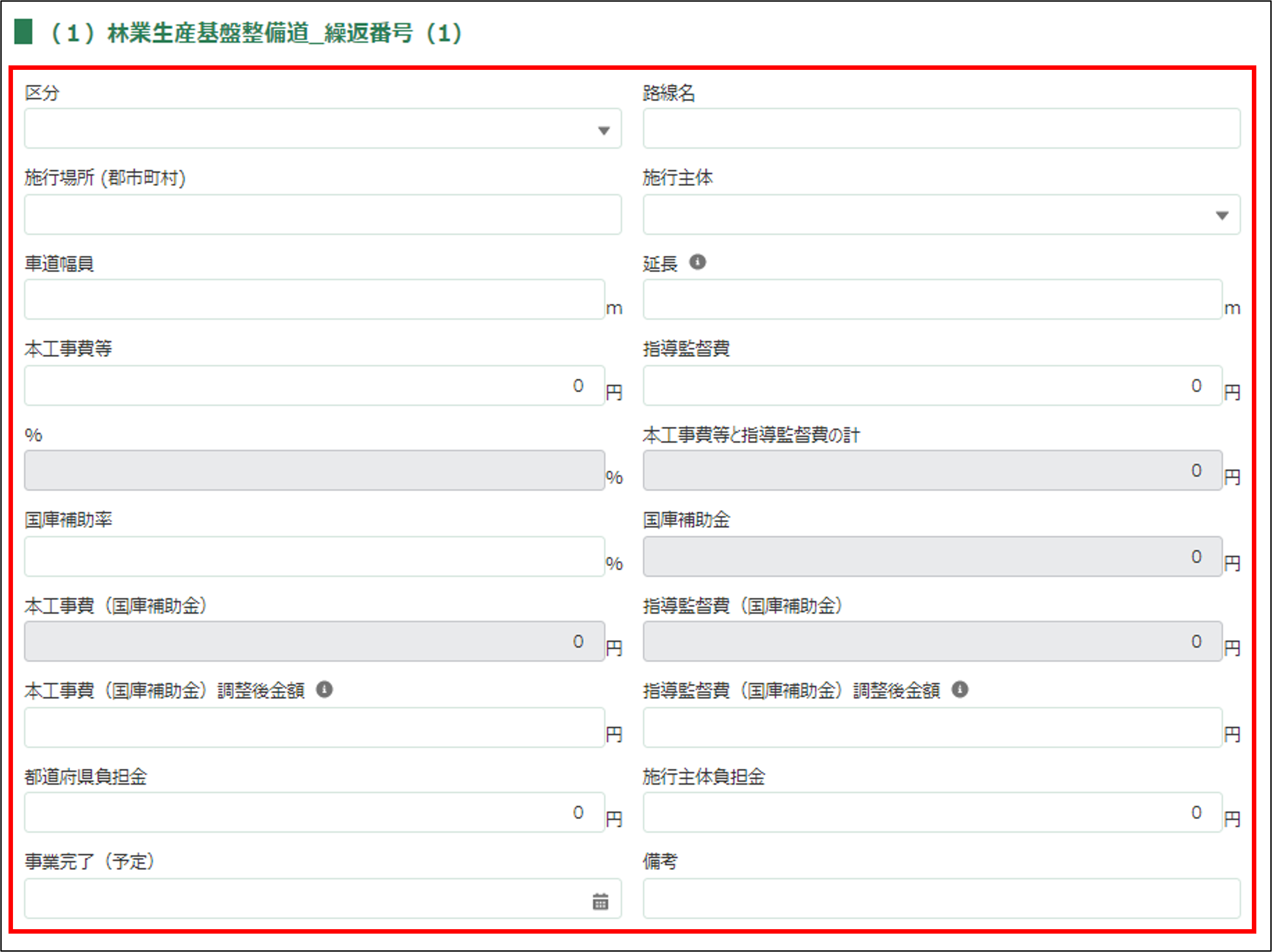12.2の付1 森林災害等復旧林道開設を入力します。