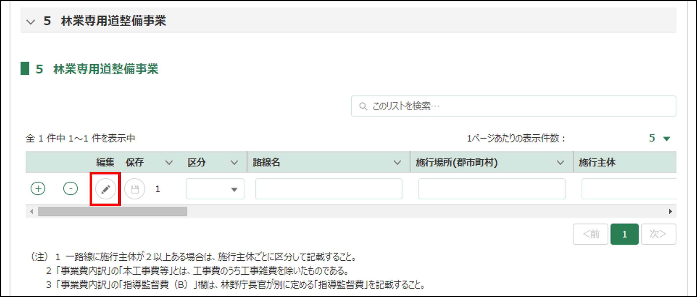 森林環境保全整備事業では各様式の備考が入力されている場合と未入力の様式がある場合に表示されます。