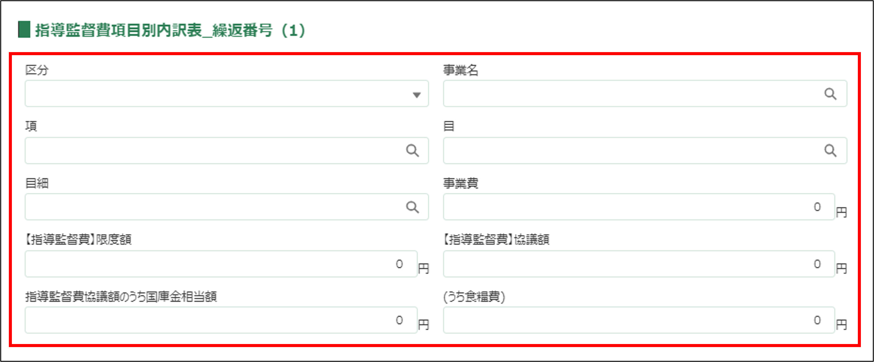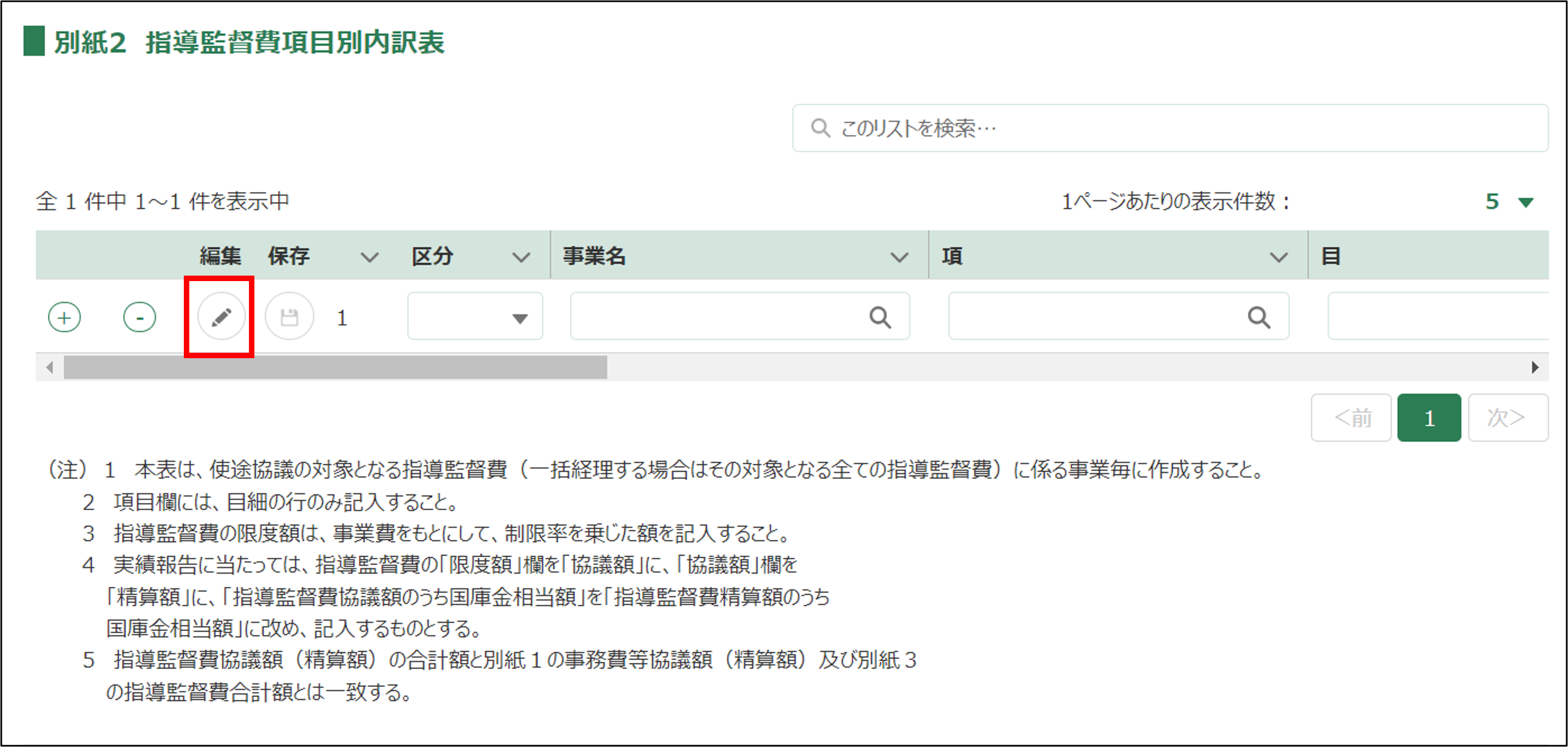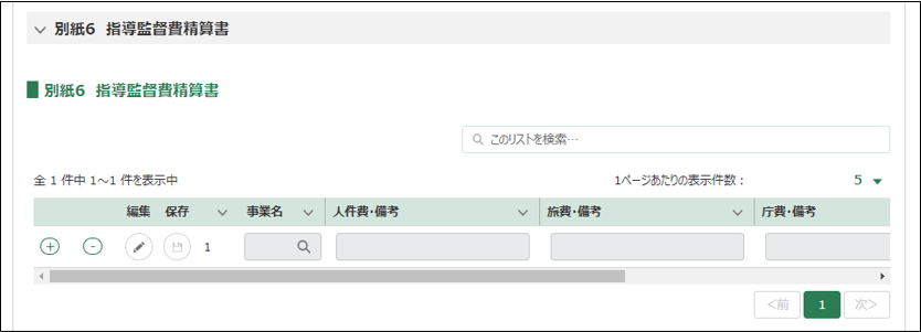 ・「事業名」「費目」「節」「区分」のすべてが同じ行の登録はできません。 ・「別紙2 指導監督費項目別内訳表」の「項」行の【指導監督費】協議額合計と、「別紙3 指導監督費内訳調書」の金額合計が一致する必要があります。 |