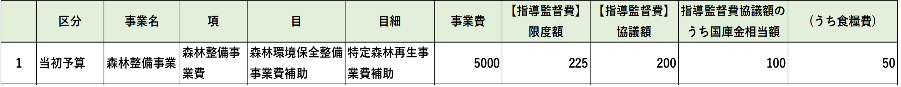 指導監督費限度額を0以上の半角数字で入力してください。 ※項が「地方創生基盤整備事業推進費」以外で目細が以下のいずれかに該当する場合は、指導監督費限度額を事業費で除算した値が0.045以下になる金額を半角数字で入力してください。 ・森林環境保全直接支援事業費補助 ・特定森林再生事業費補助 ・林道施設PCB廃棄物処理促進対策事業費補助 ・指導監督交付金 |