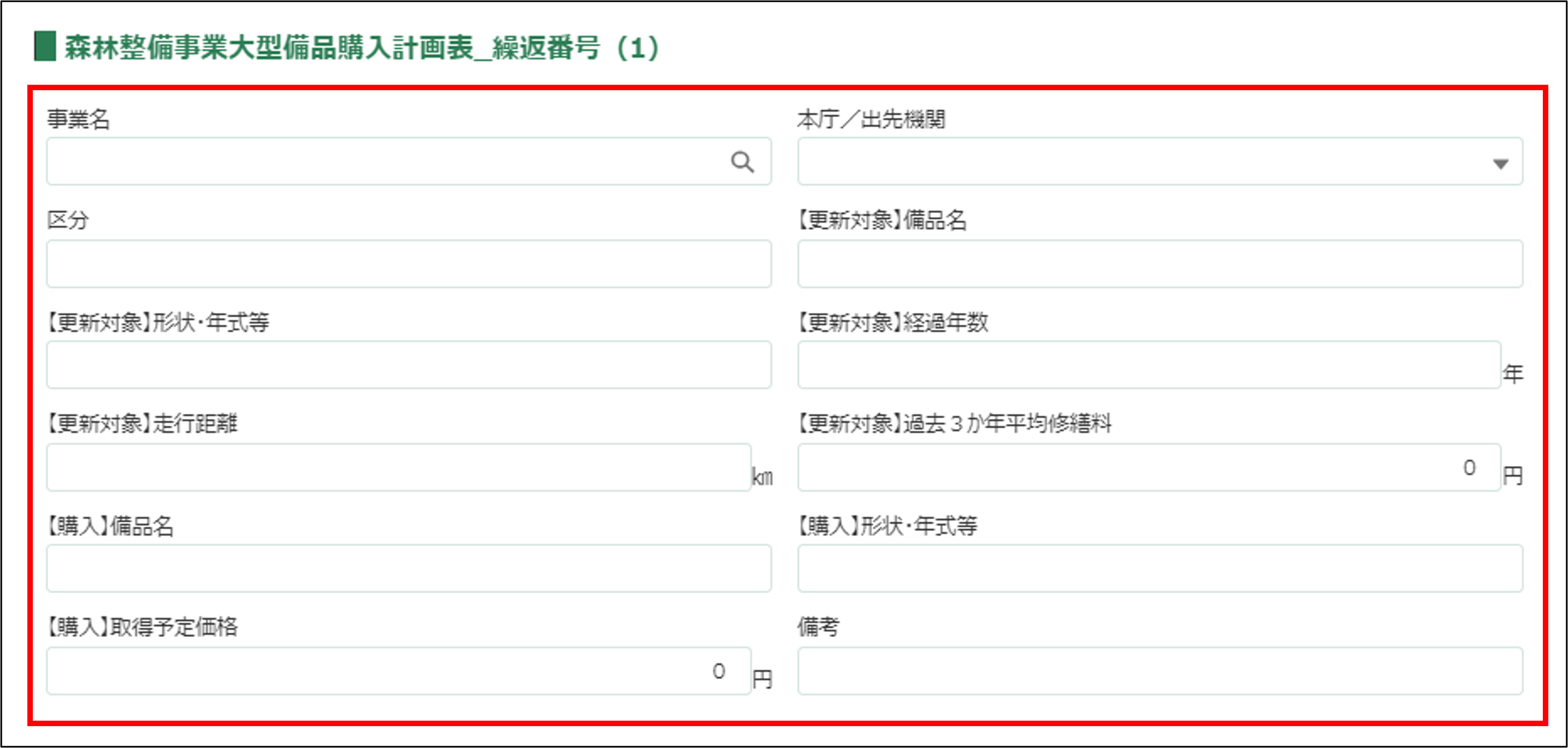 更新対象備品の過去3か年平均修繕料を0以上の半角数字で入力してください。 |