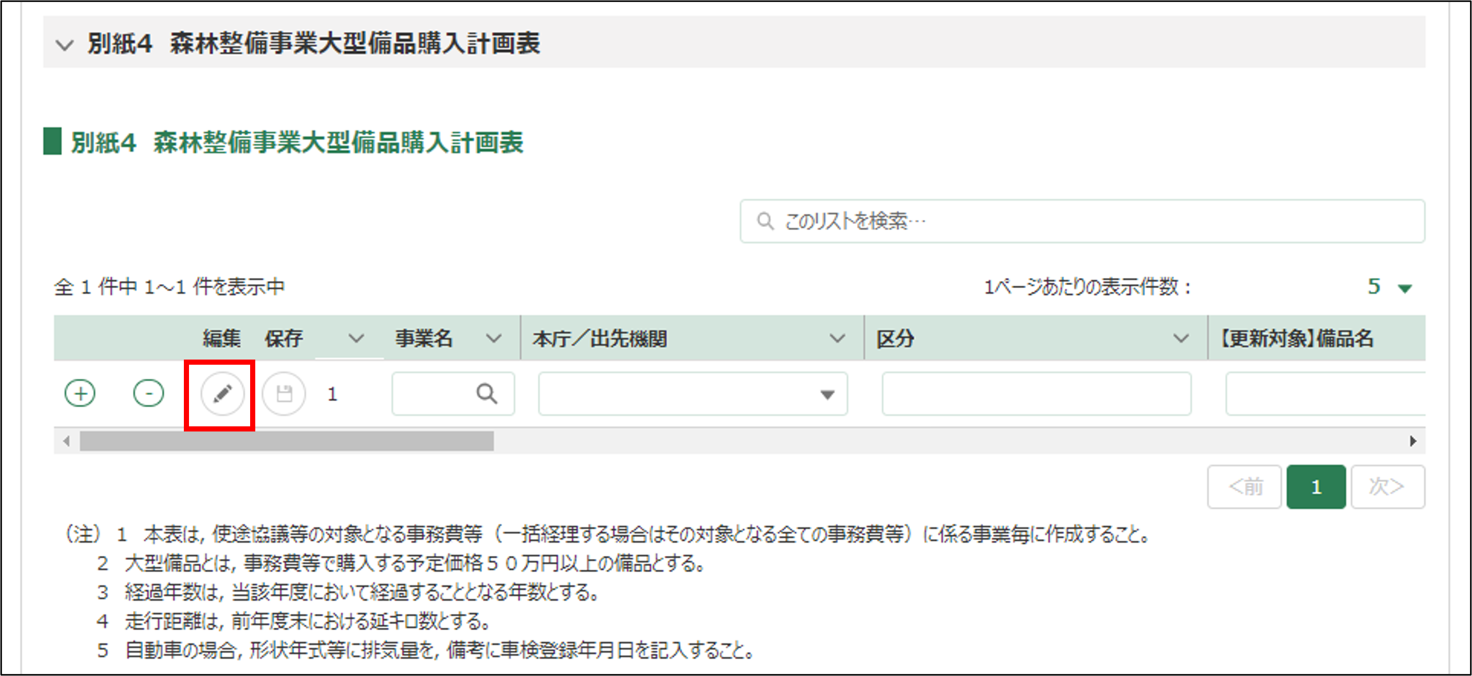 22.別紙4 森林整備事業大型備品購入計画表を入力します。