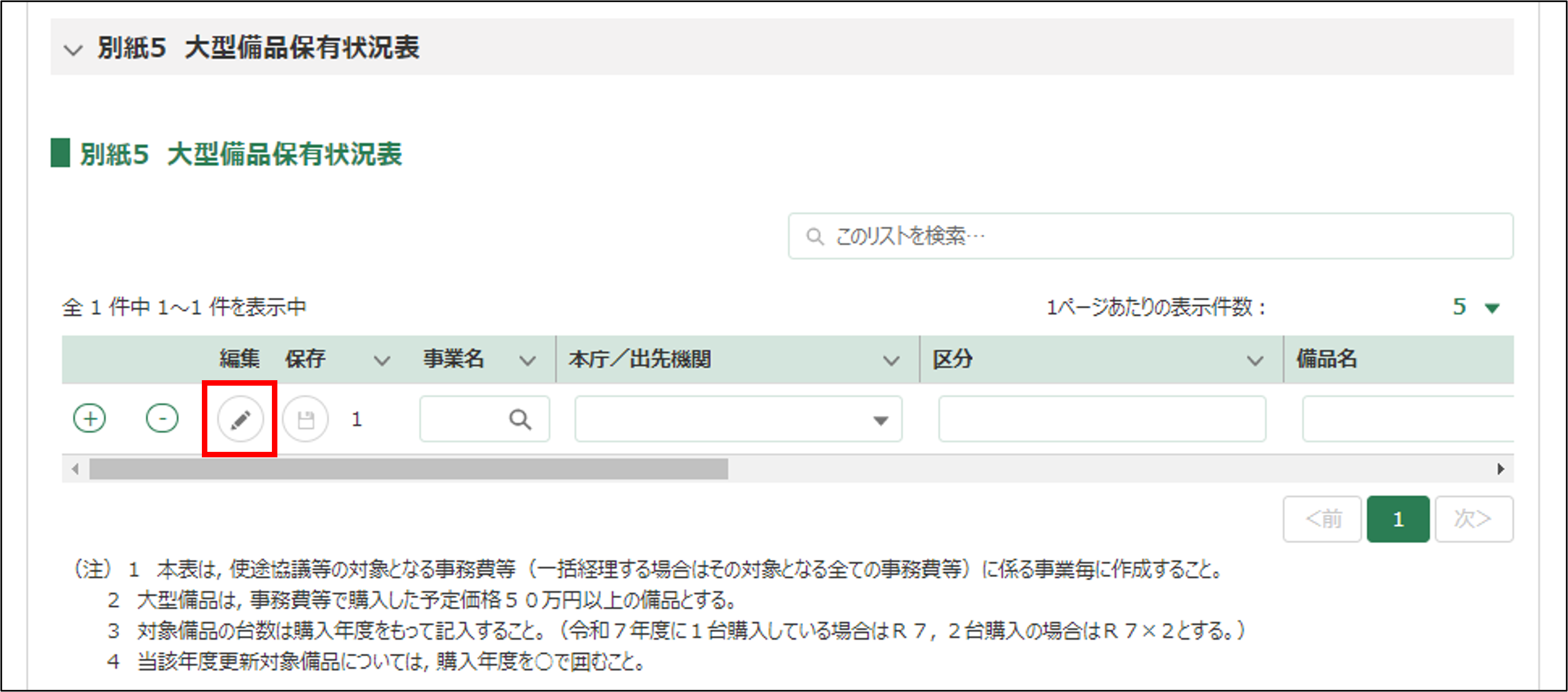 22.別紙5 大型備品保有状況表を入力します。