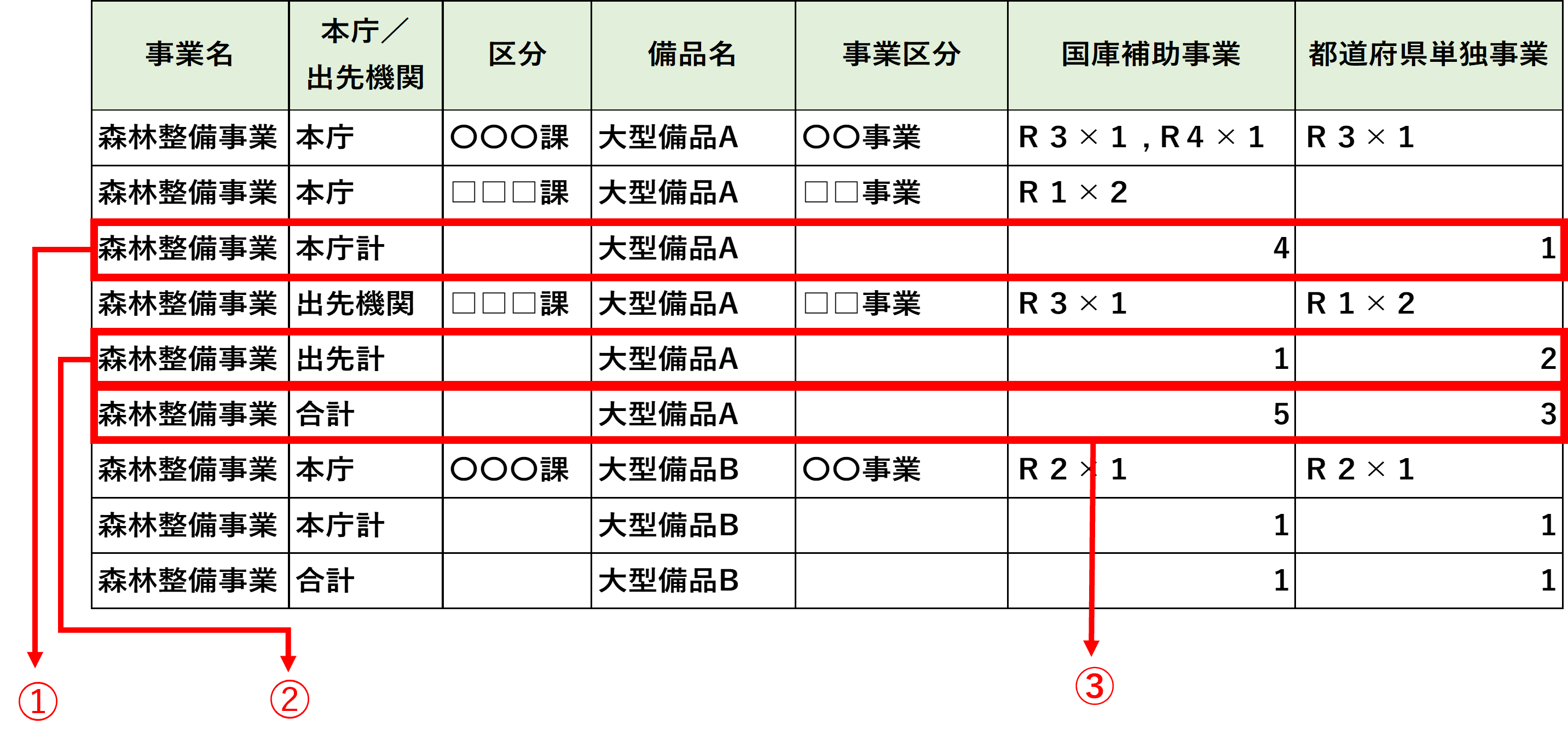 | ③ | 大型備品Aの[本庁計]と[出先計]の合計 |