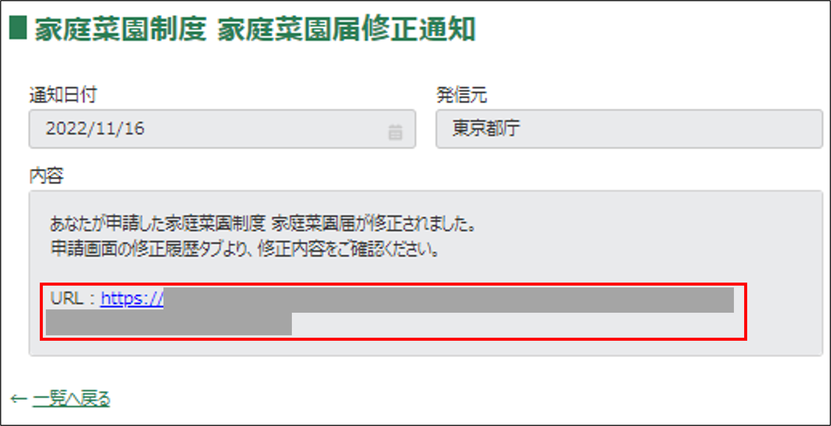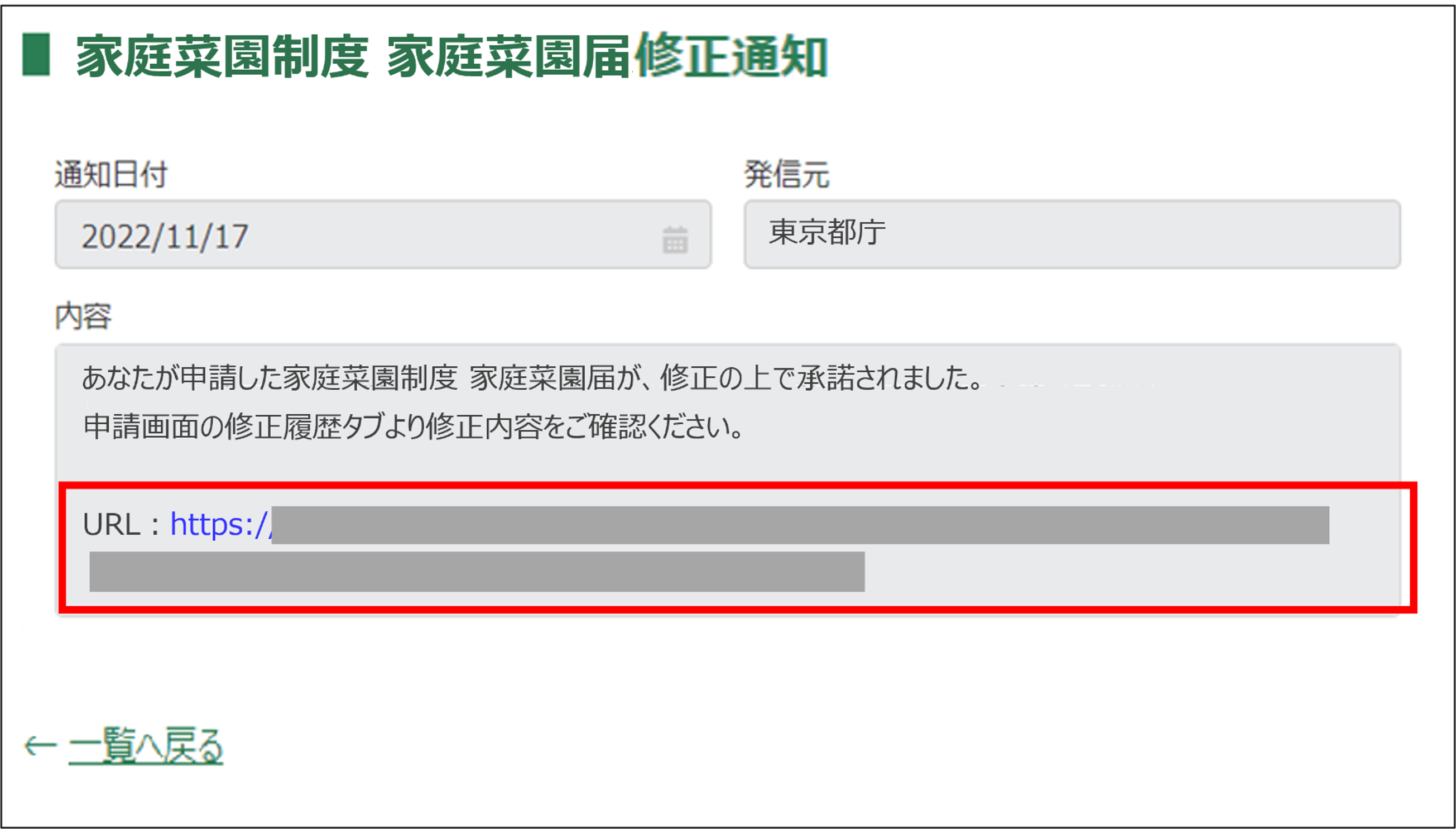 申請内容に、明らかな誤記や記載漏れ等の軽微な誤りがあり、審査者が修正を行った場合、「修正通知」が届きます。