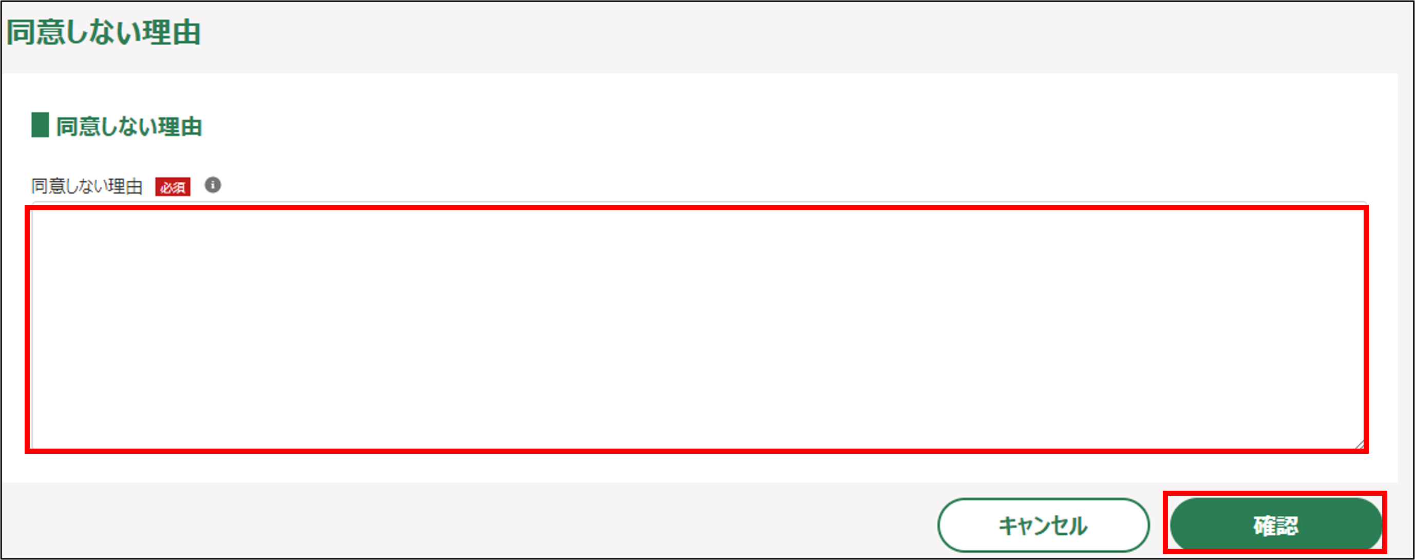 同意しない理由を入力し、「確認」ボタンをクリックします。