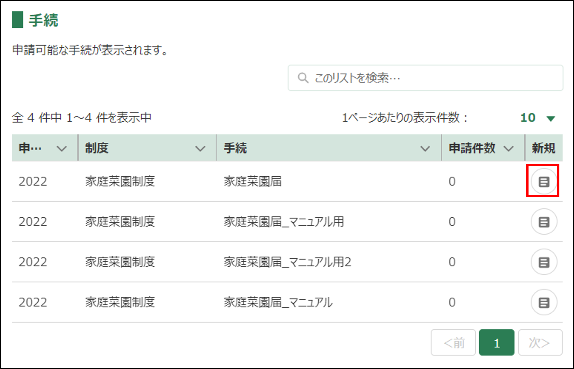 4.「手続」欄に、申請代行可能な手続が表示されます。