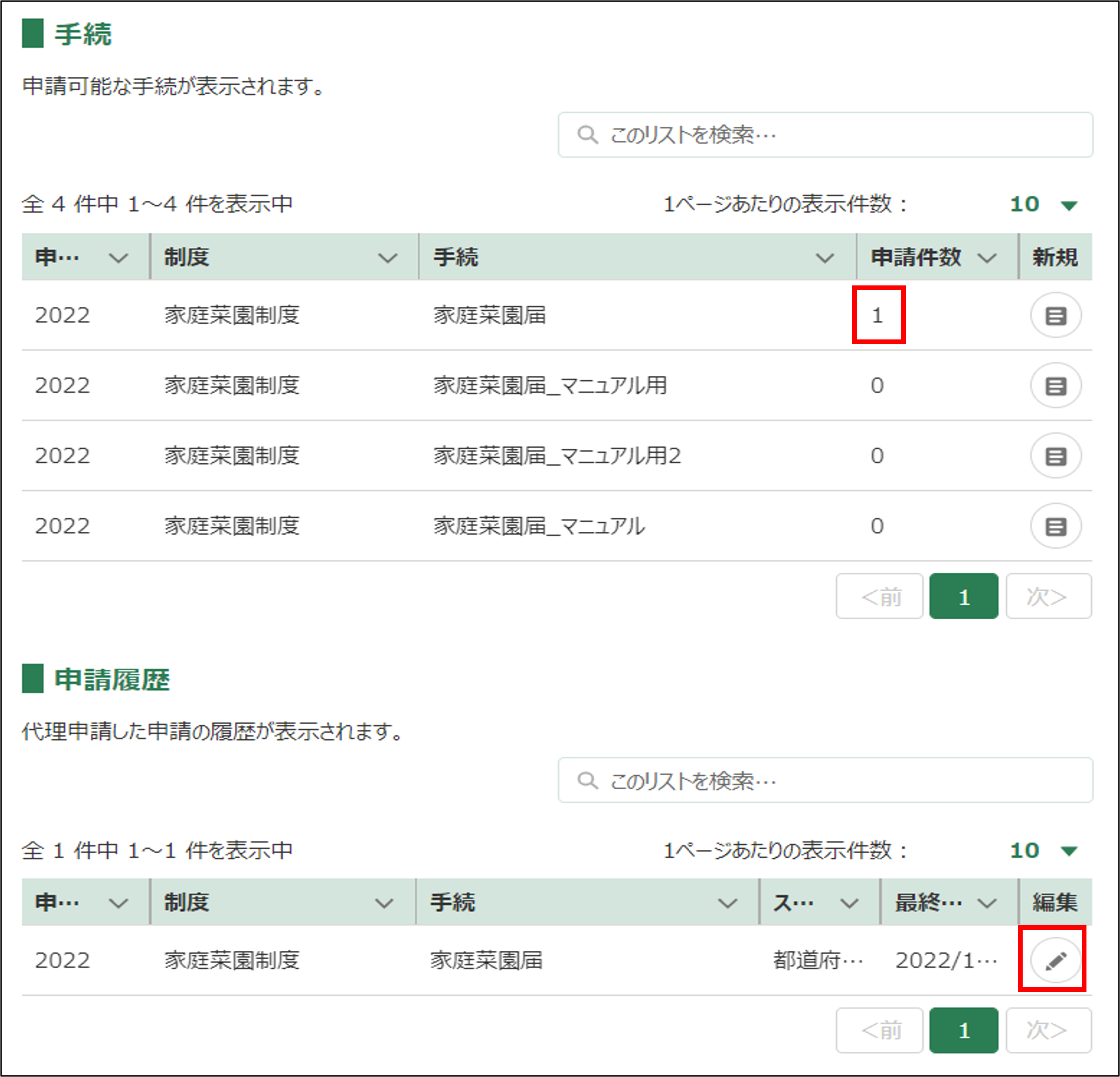 6.申請代行後は「手続」欄に申請件数が表示されます。