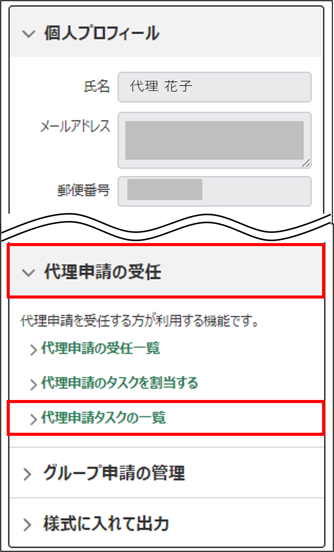 2.「マイページ」画面左側の「代理申請の受任」をクリックします。