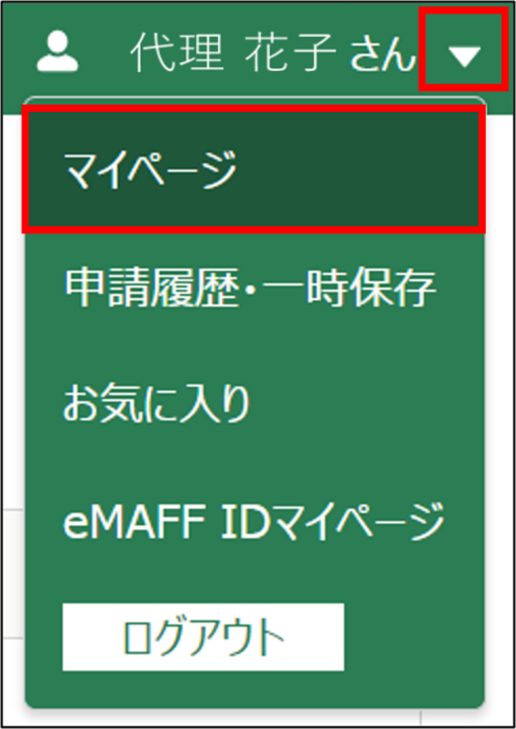 1.画面右上の「▼」ボタンをクリックし、表示された一覧から「マイページ」をクリックします。