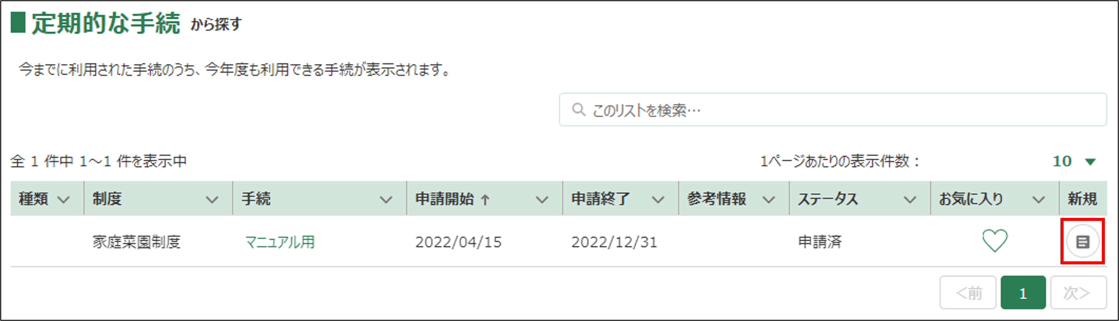 申請したい手続を、定期的な手続の一覧から探す手順を記載します。