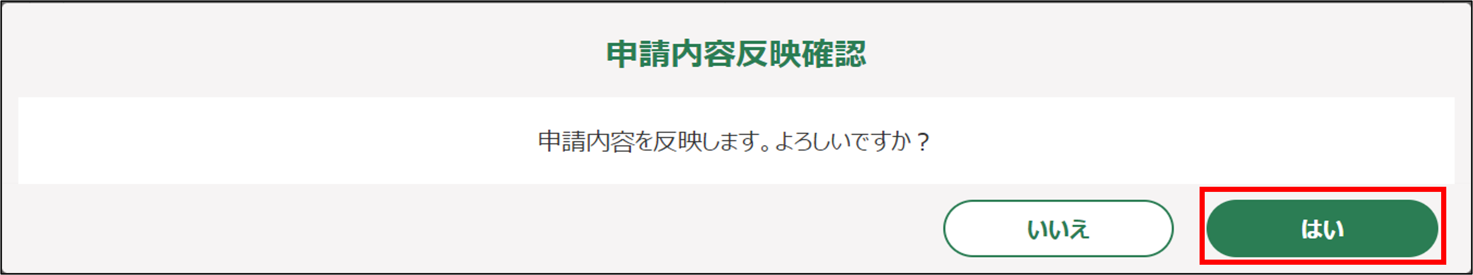 4. 「申請内容反映確認」画面が表示されます。「はい」ボタンをクリックします。