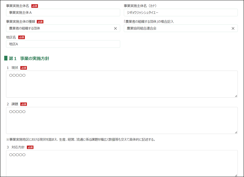 各項目に申請内容が入力された状態となるため、変更が必要な項目のみ修正を行い申請します。