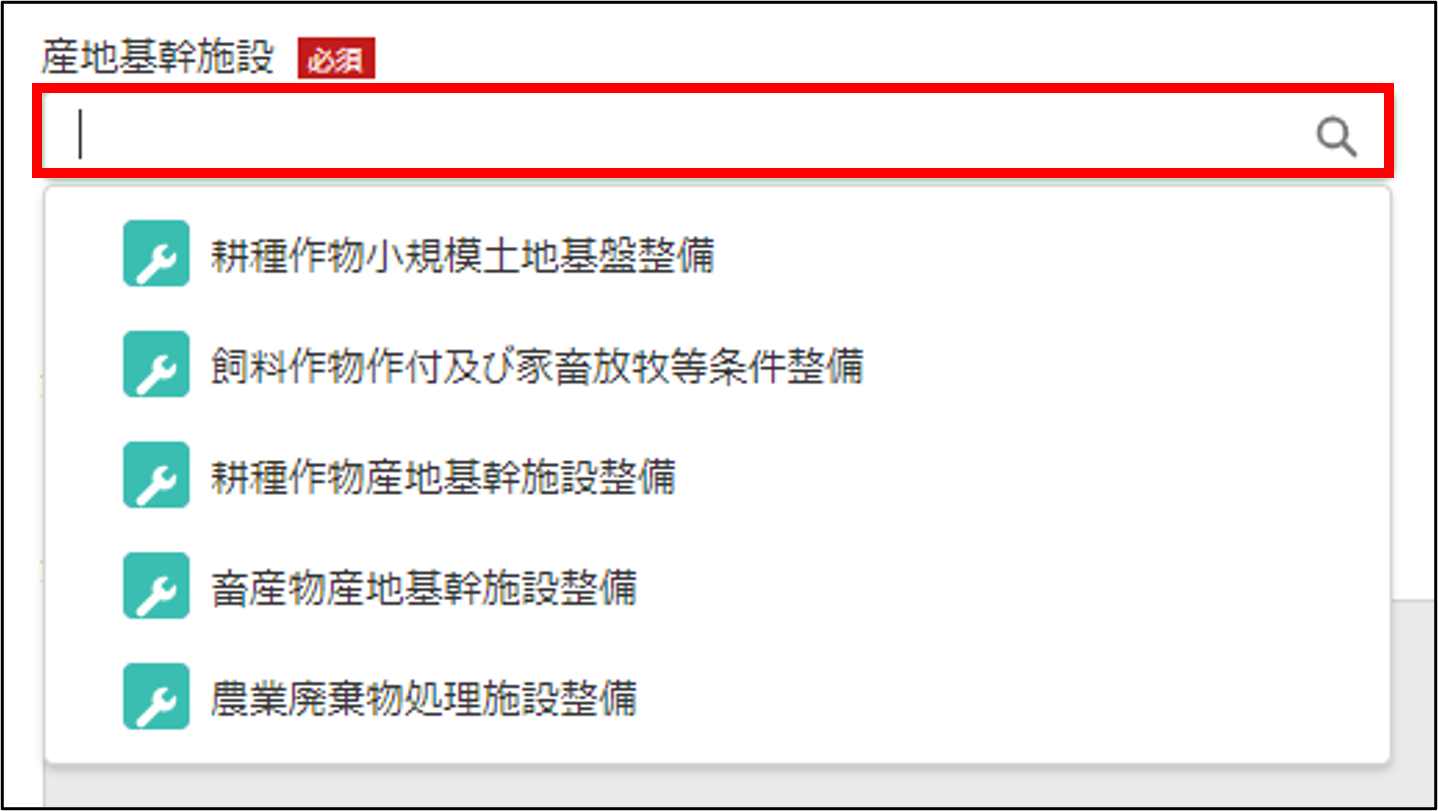 上記「産地基幹施設」を選択することにより選択可能となります。