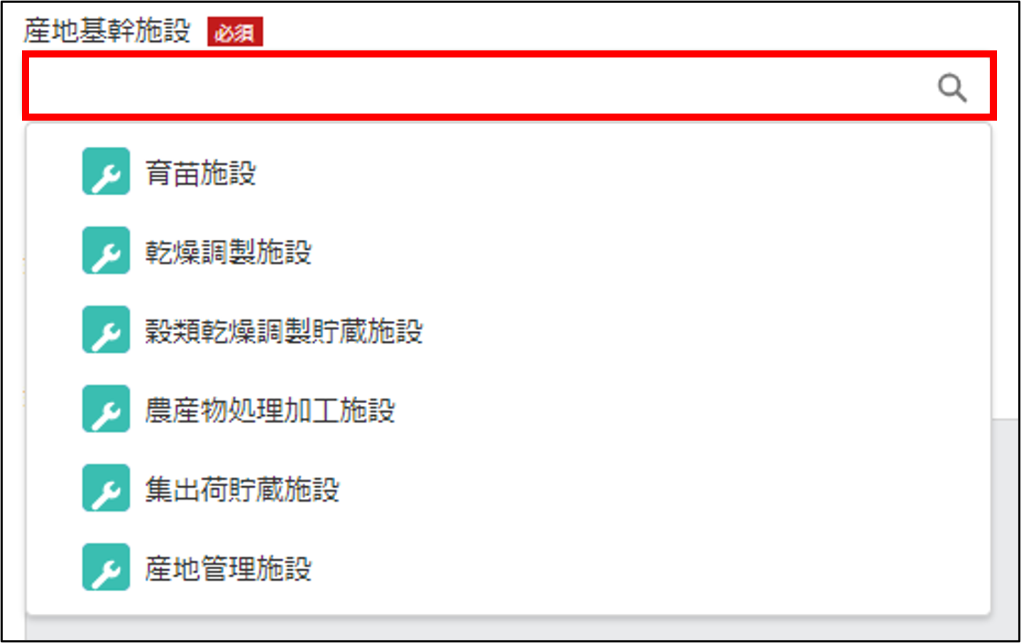上記「産地基幹施設」を選択することにより選択可能となります。