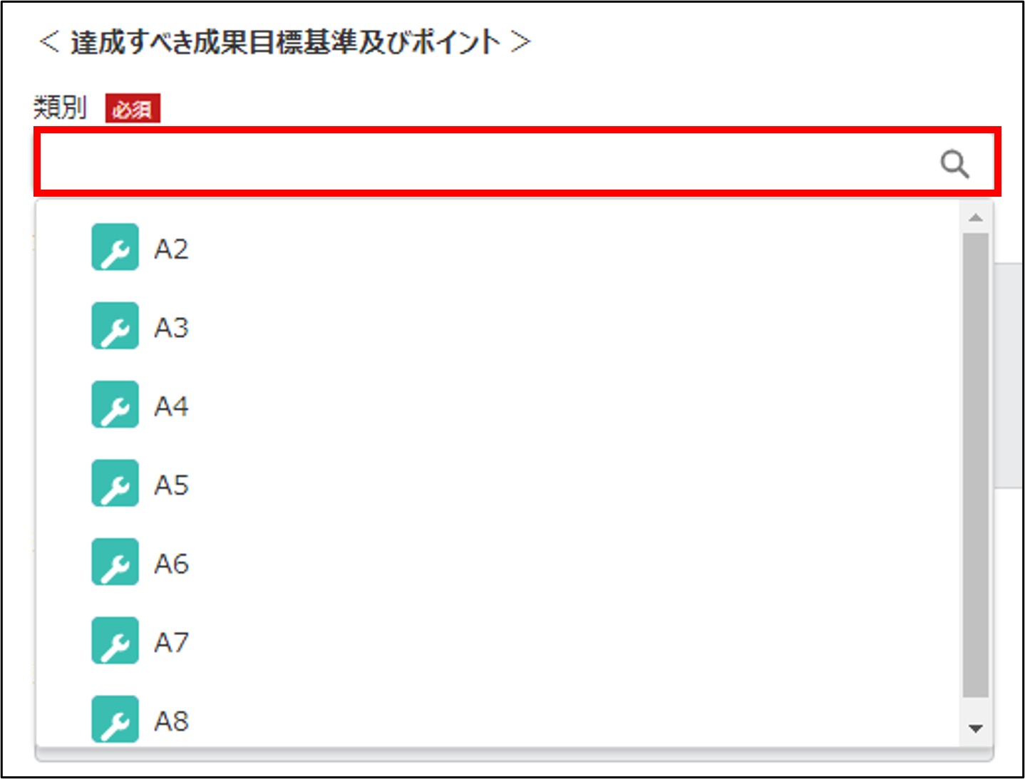 「類別の成果目標の内容」に記載の選択肢を参照し選択してください。